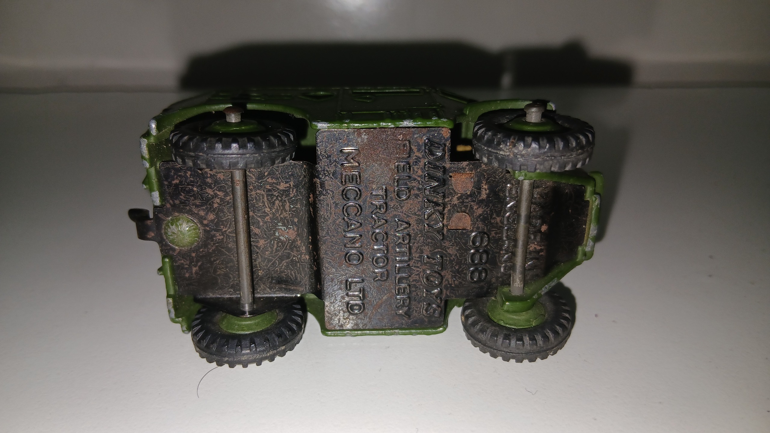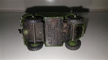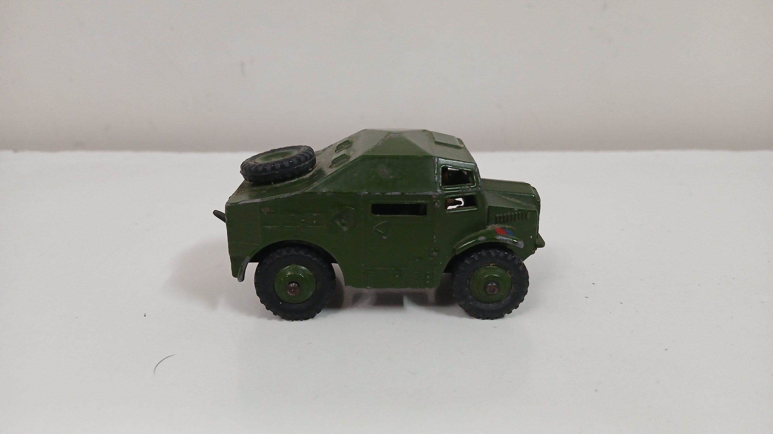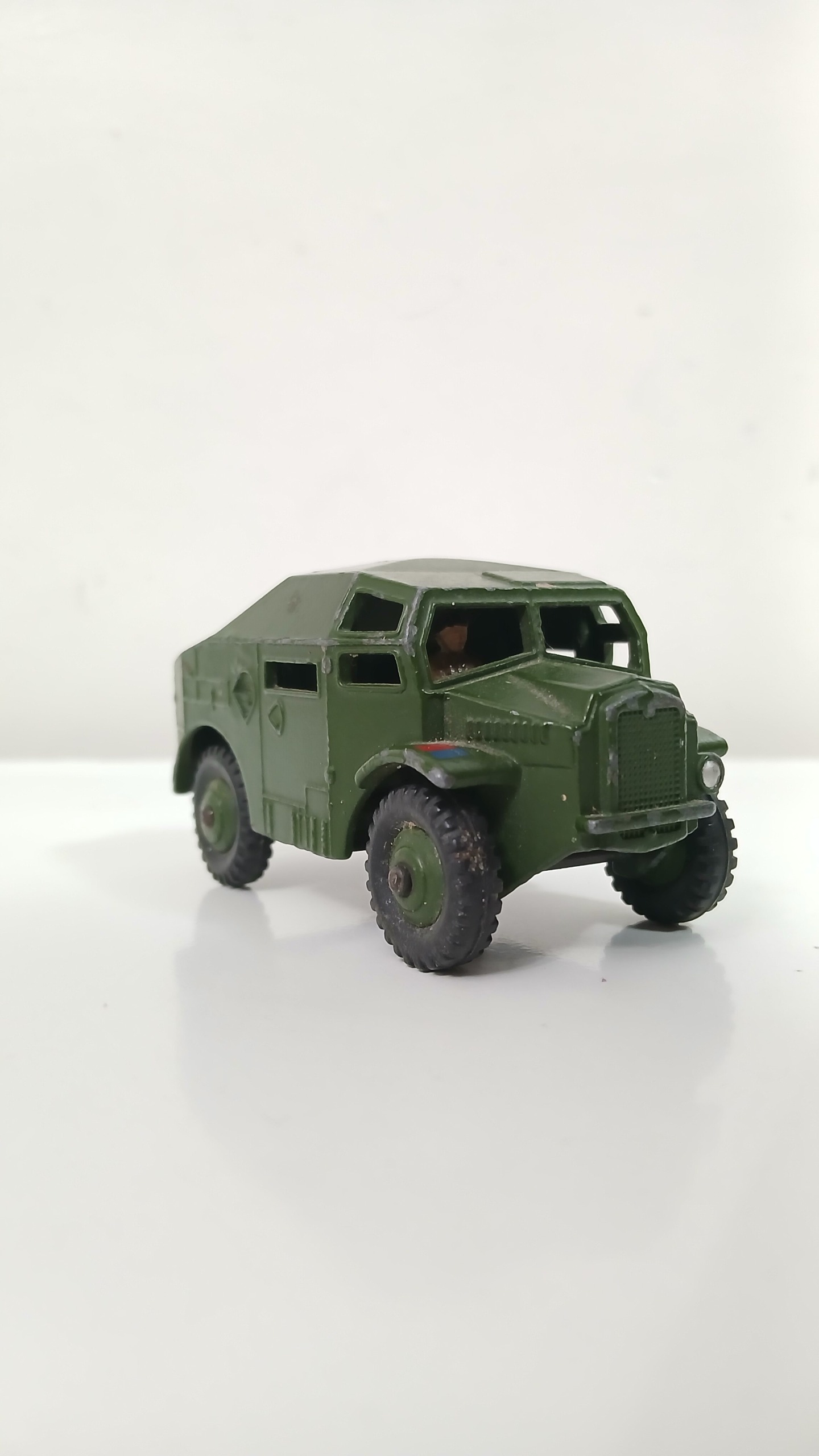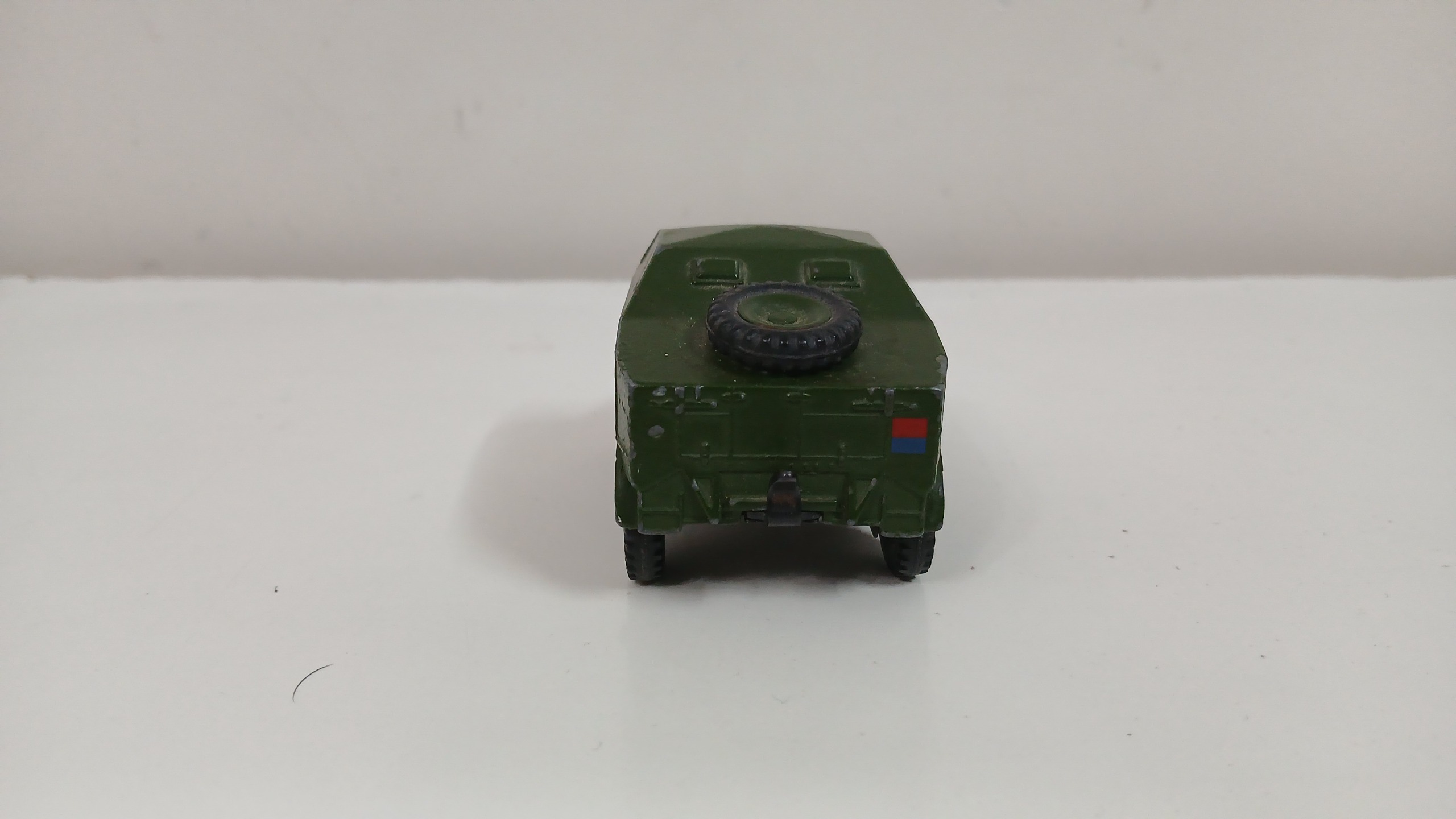 ماکت ماشین قدیمی نظامی دینکی تولید دهه پنجاه با فیگور نظامی