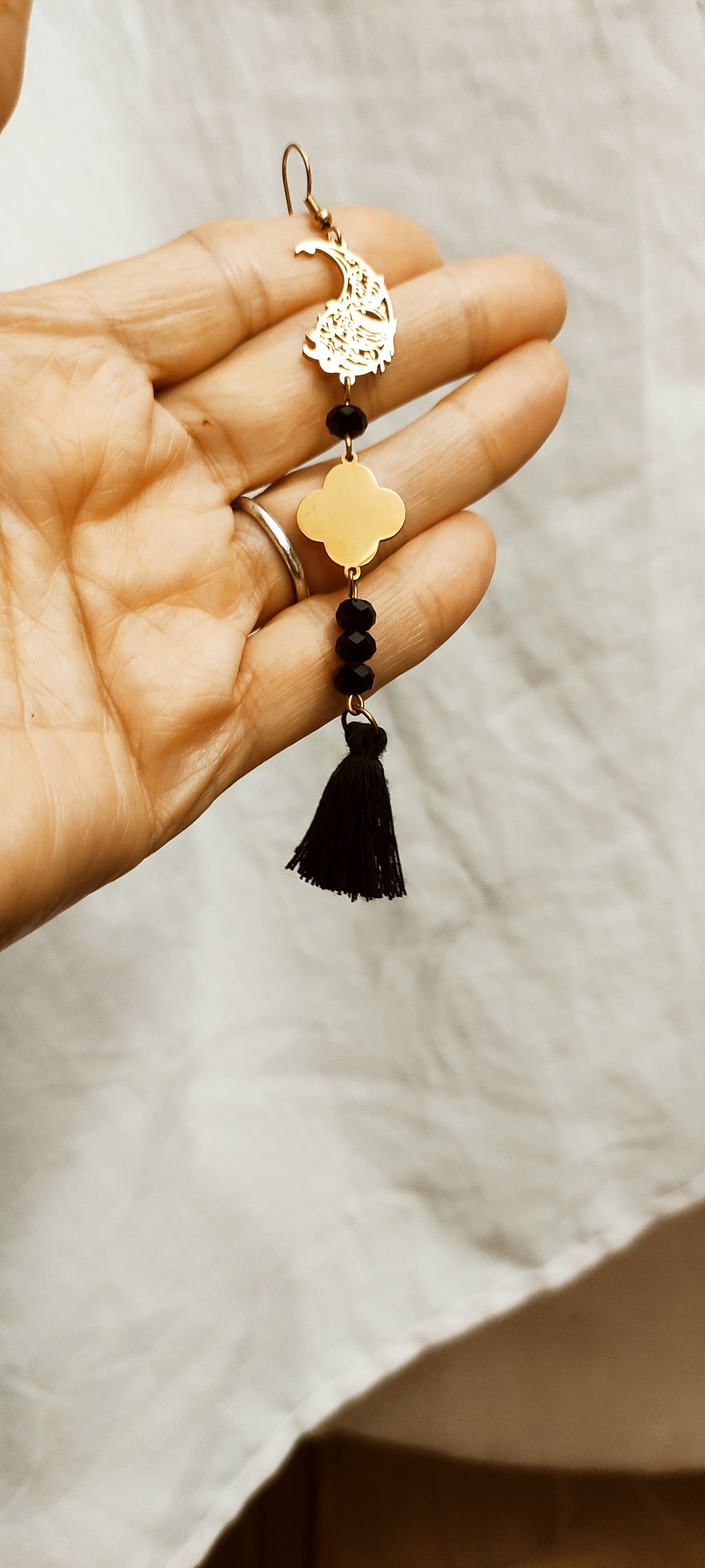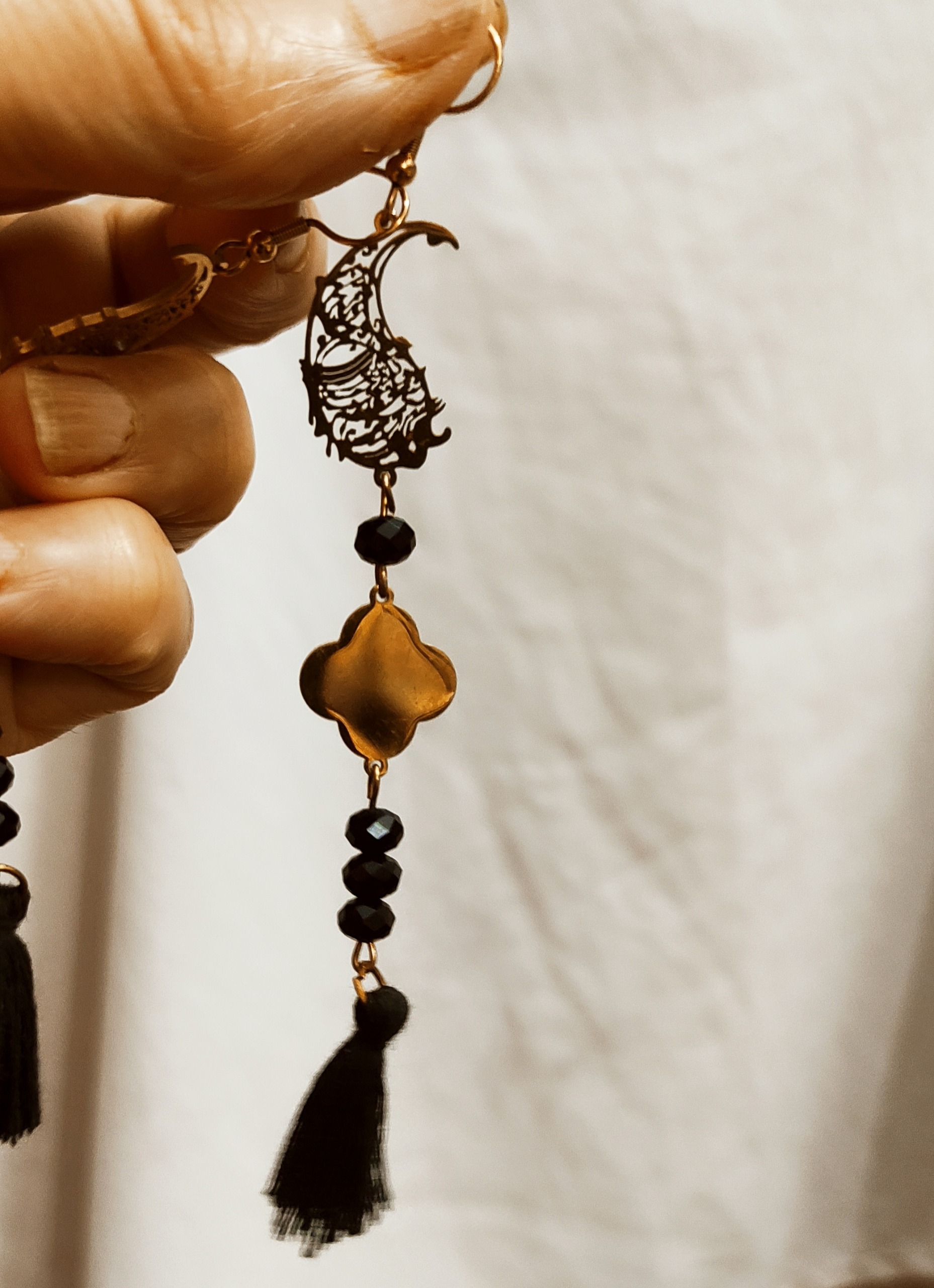 گوشواره بته جقه هنری سفارشی بسیاااار زیبا،سبک،شیک وخاص.میتونید هرکدوم از منگوله،مهره های کریستال،ونکلیف رو هم ازش جدا کنید