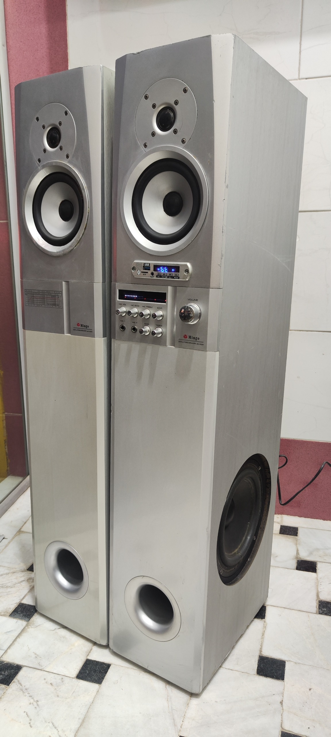 سلام اسپیکر ایستاده ارتفاع یک متر مارک مینگو مدل MG-2300N سالم و خوش صدا واضح با بیس بسیار عااالی دارای usb.Bt.Aux.Radio و کنترل در ابعاد 101×19.5×31.5 دارای حفاظ توری ساب