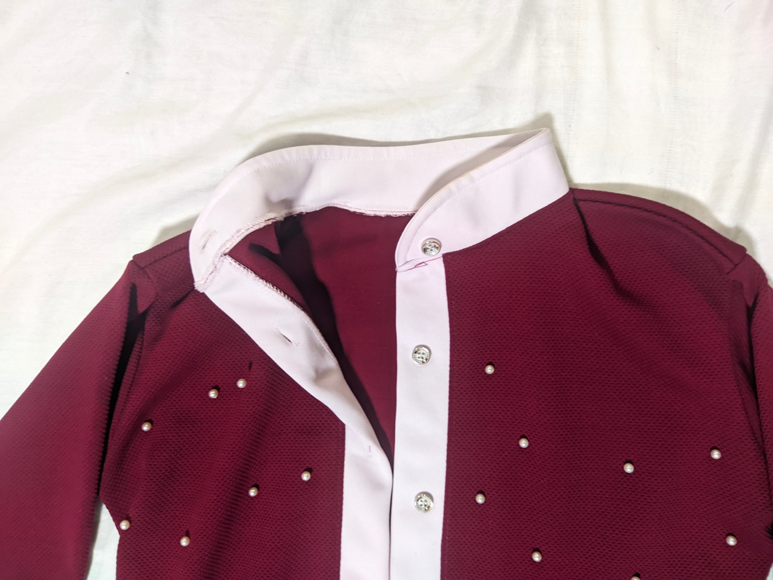 شومیز نگین دار ، زرشکی ، بدون مارک اندازه تقریباً بزرگ دست دوم