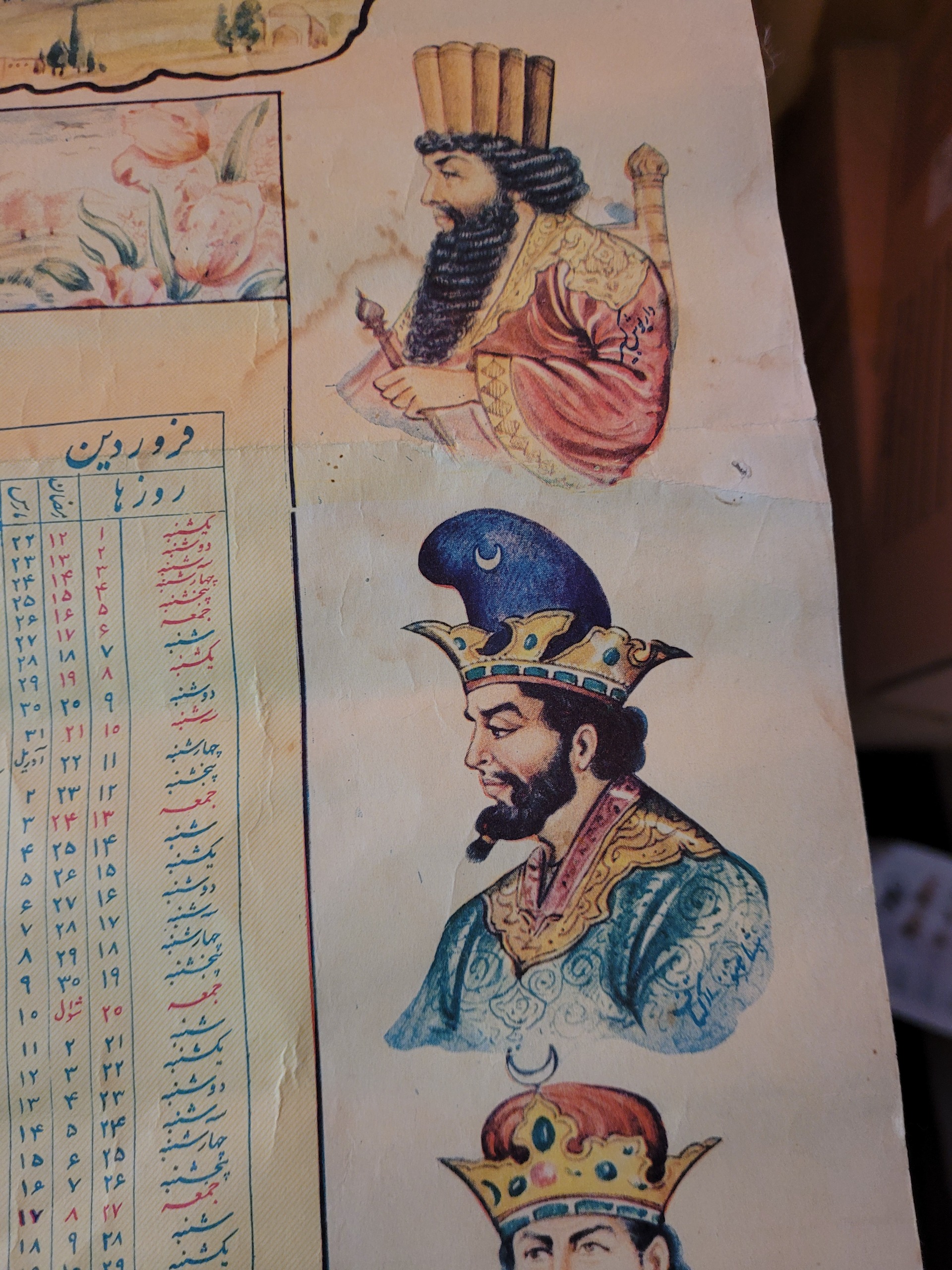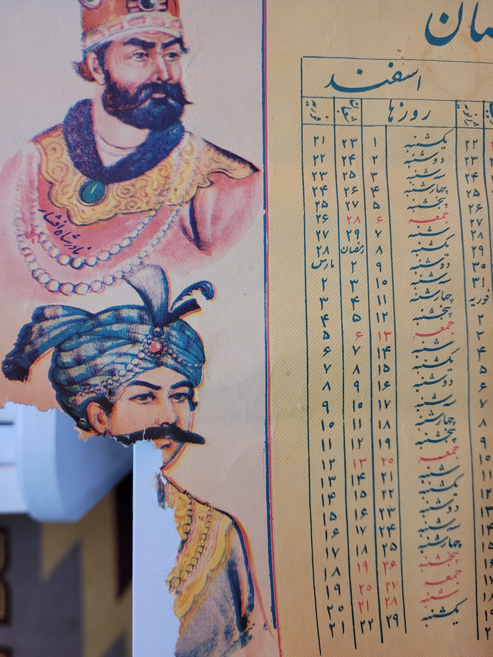 تقویم دیواری بزرگ سال 1338 با تصاویر پادشاهان