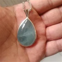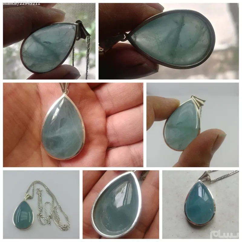 گردنبند نقره دستساز بسیار خوش ساخت و زیبا اثر استاد فوقانی با نگین استثنایی درشت خوش رنگ و بسیار زیبا آکوامارین 65 قیراطی کاملا طبیعی بدون هیچ گونه بهسازی(کار به تایید آزمایشگاه رسیده در صورت درخواست شما شناسنامه معتبر صادر میشود که 400 هزار تومان به مبلغ گردنبند اضافه میشود)