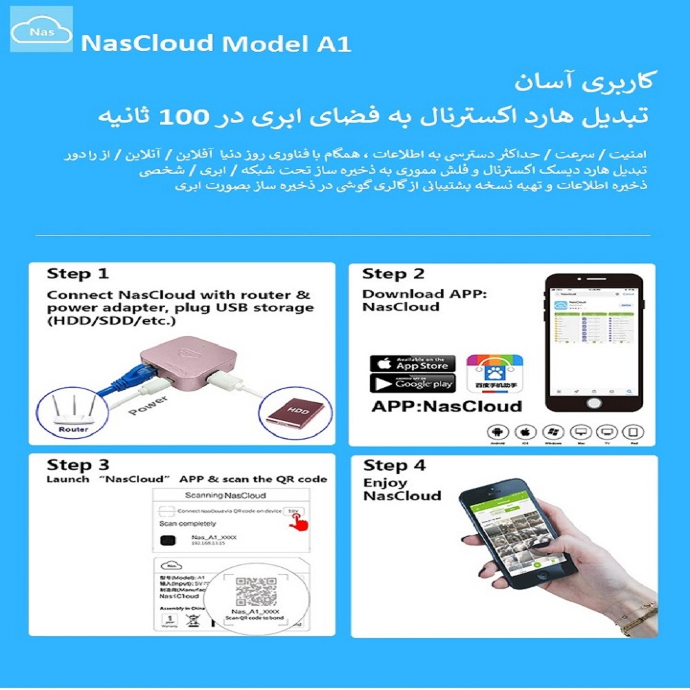 - با دستگاه ذخیرهساز ابری NasiCloud، دیگر نیازی به پرداخت هزینههای بالا برای سرویسهای ابری ندارید. این ابزار کمحجم و کاربردی، هارد اکسترنال یا فلش مموری شما را به یک سرور ابری تبدیل میکند که از طریق اینترنت و یا شبکه داخلی، همیشه و همهجا در دسترس شماست.