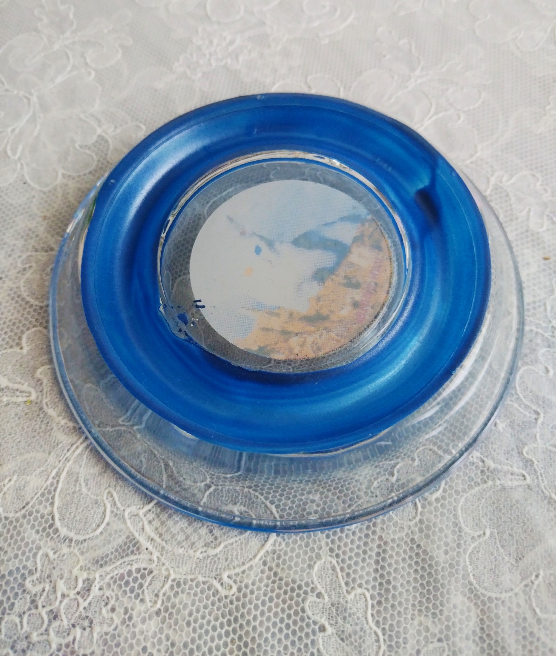 طرح گربه روی  زیر سیگاری چاپی  هست و بدلیل گذشت زمان کمی  پریدگی رنگ داره