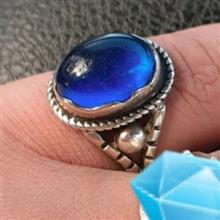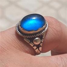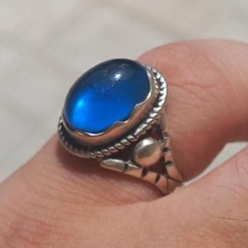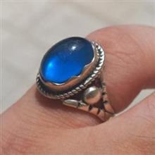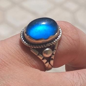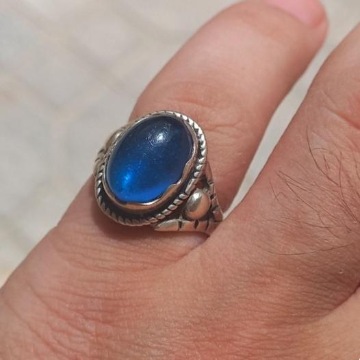 انگشترنقره دستساز با مهر سازنده با نگین آبگینه طبیعی کهنه ساسانی با تلالو ورفلکس بالا