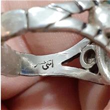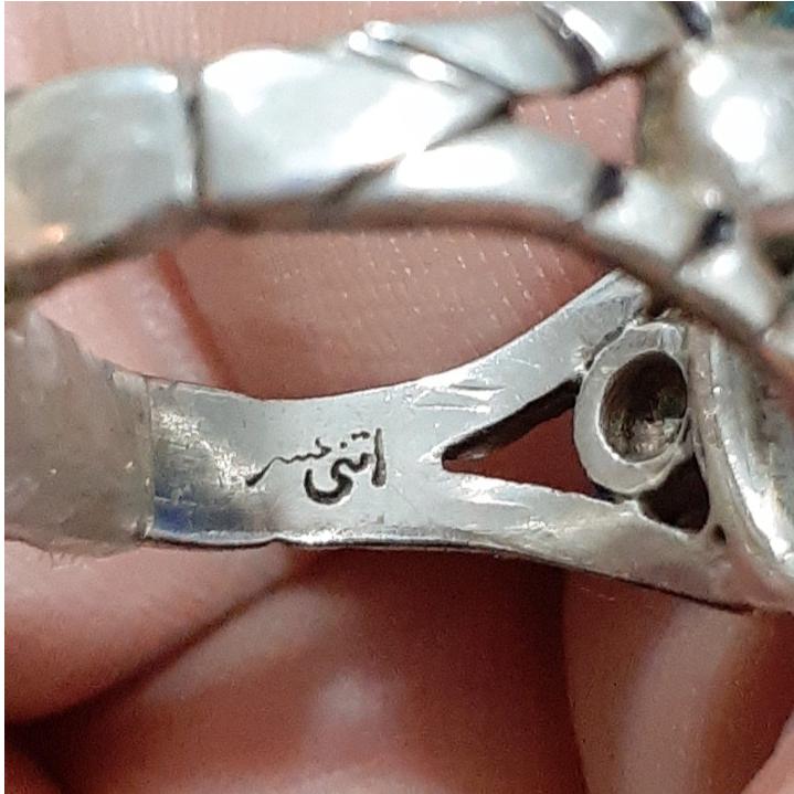 انگشترنقره دستساز با مهر سازنده با نگین آبگینه طبیعی کهنه ساسانی با تلالو ورفلکس بالا به مانند یاقوت کبود بسیار زیبا