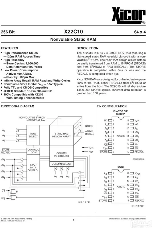 آی سی x2210p  استاتیک رم 256 بیتی ساخت کمپانی XICOR میباشد.