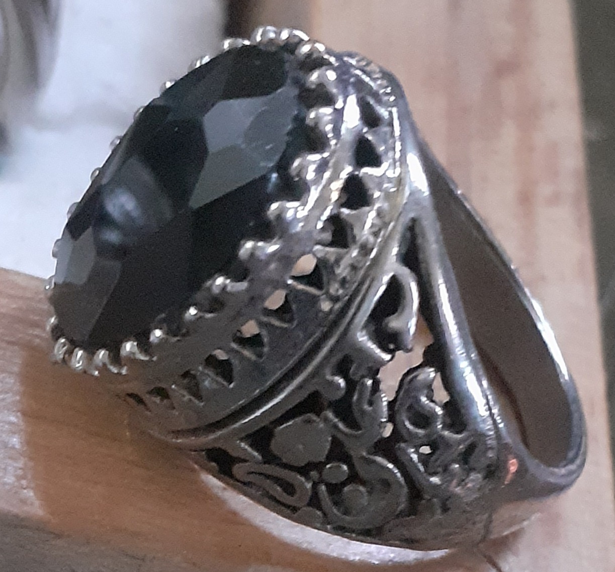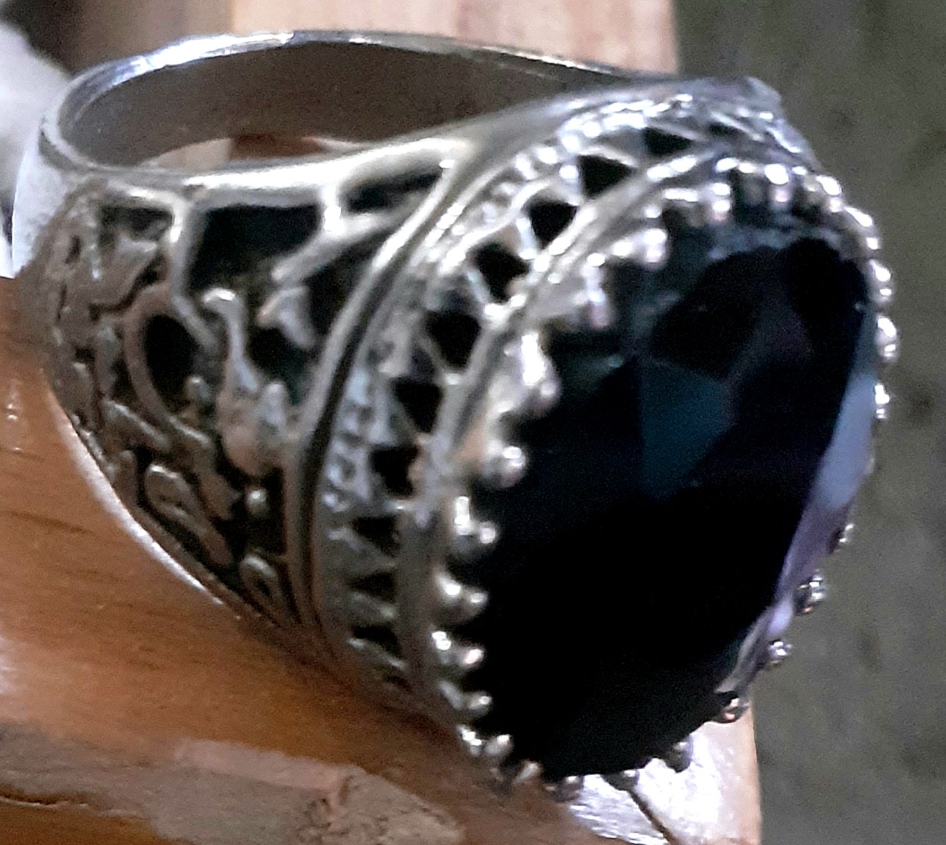 انگشتر زیبای یاقوت کبود تراش کنده کاری سنتیک
