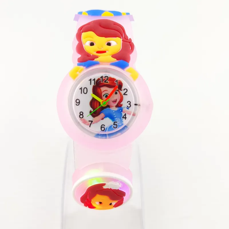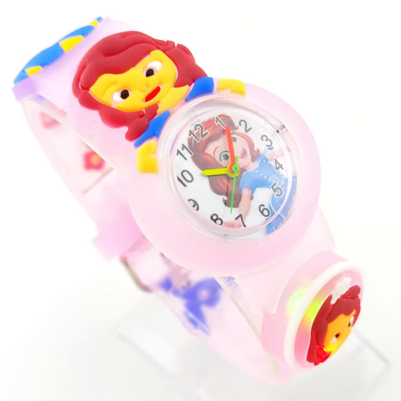 ساعت بچگانه عروسکی چراغدار سیلیکونی صورتی ضدآب