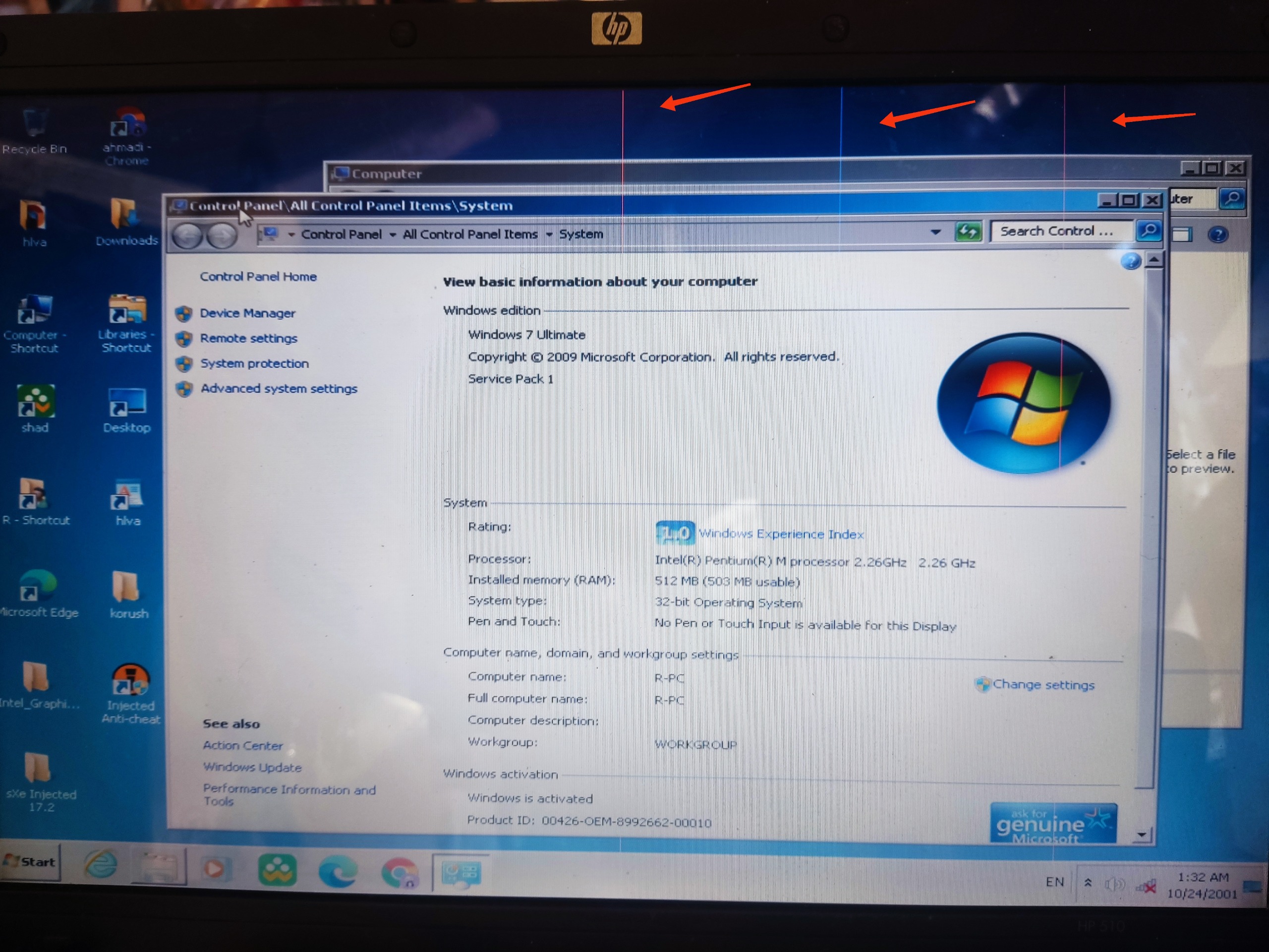 روی صفحه سه تا خط عمودی افتاده که با فلش قرمز مشخص شده (زمانی که لبتاپ روشن است خیلی معلوم نیست)