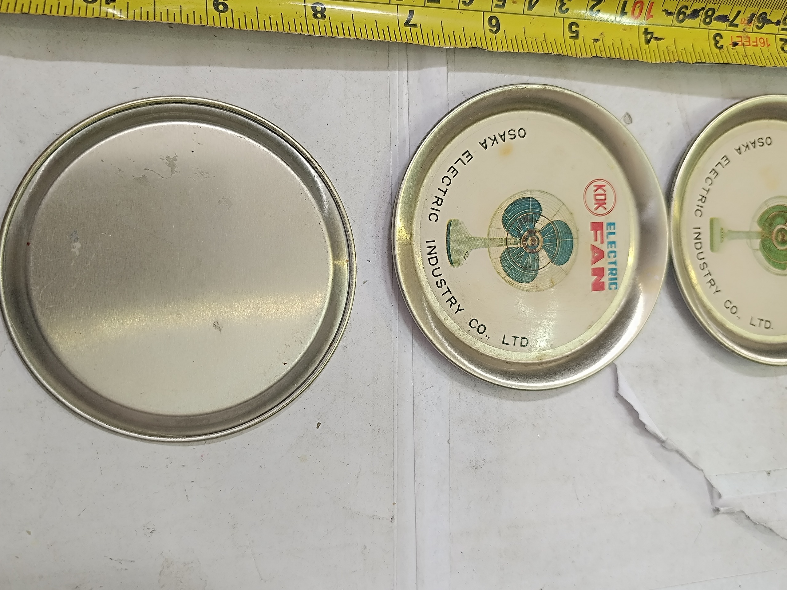 ست سه عددی زیر لیوانی فلزی تبلیغاتی شرکت اوزاکا الکتریک ژاپن ، یه کار کلکسیونی قدیمی ، کیفیت و ابعاد مطابق تصویر ، فروش بصورت سه عددی با هم