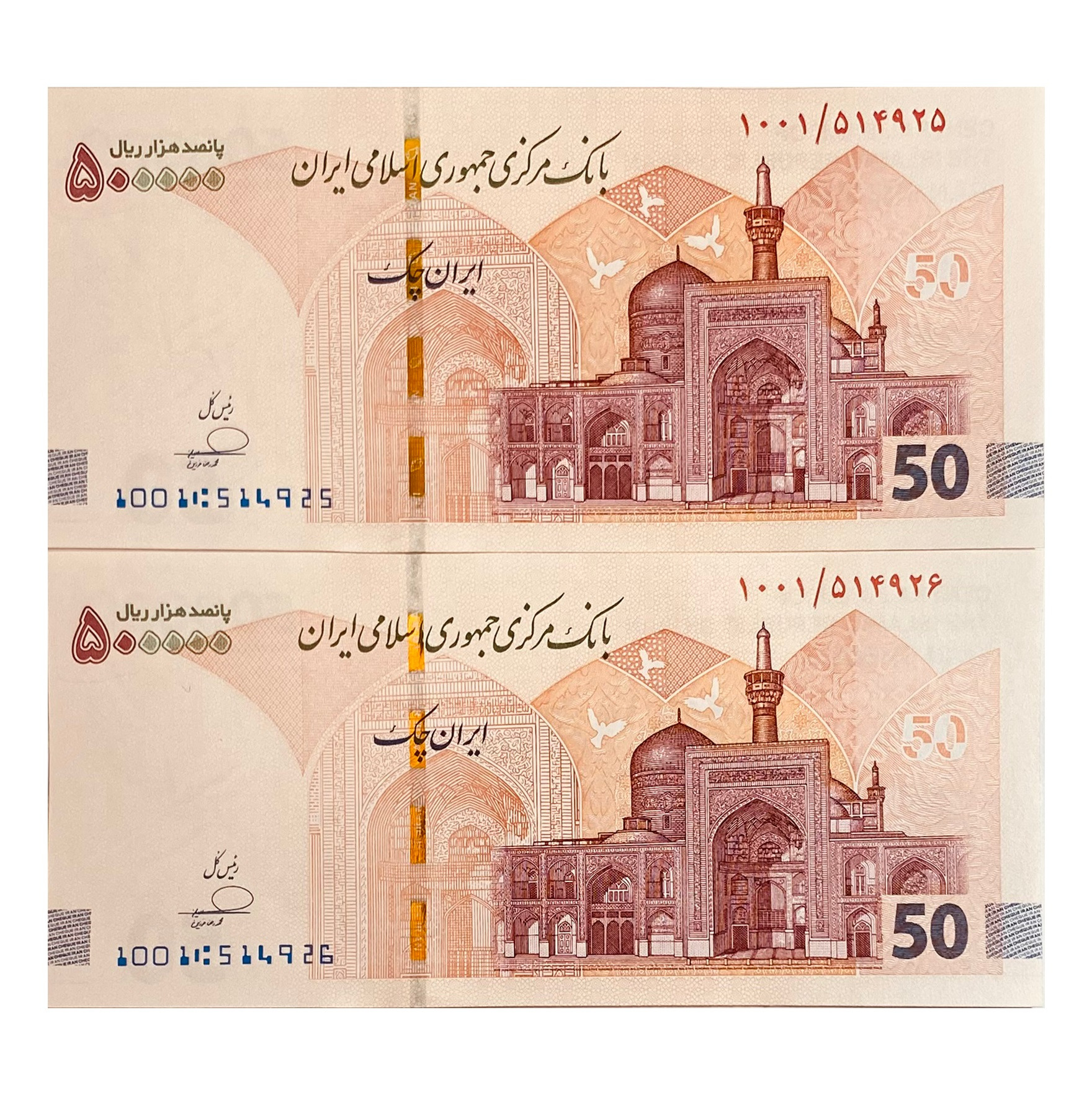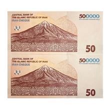یک جفت تراول 50 هزار تومنی جدید، پرفیکس ارزشمند یک یکم، نو و بانکی، شماره و کیفیت عین تصویر