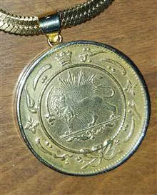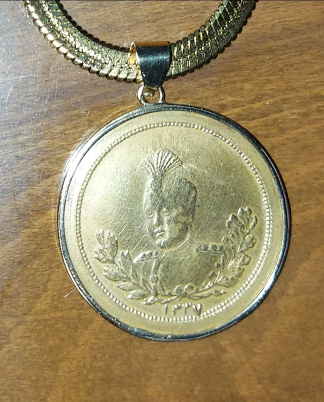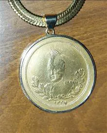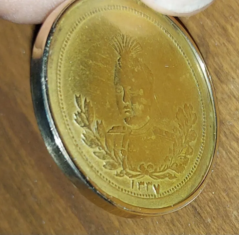 مدال برنز احمد شاه قاجار قدیمی با قاب طلا.