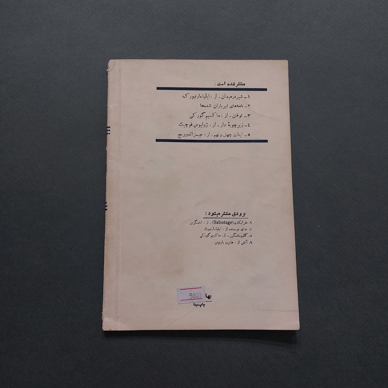 به دلیل قدیمی بودن کتاب نوع چاپ و جنس کاغذ برخی صفحات ممکن است دو رنگ شده باشد.