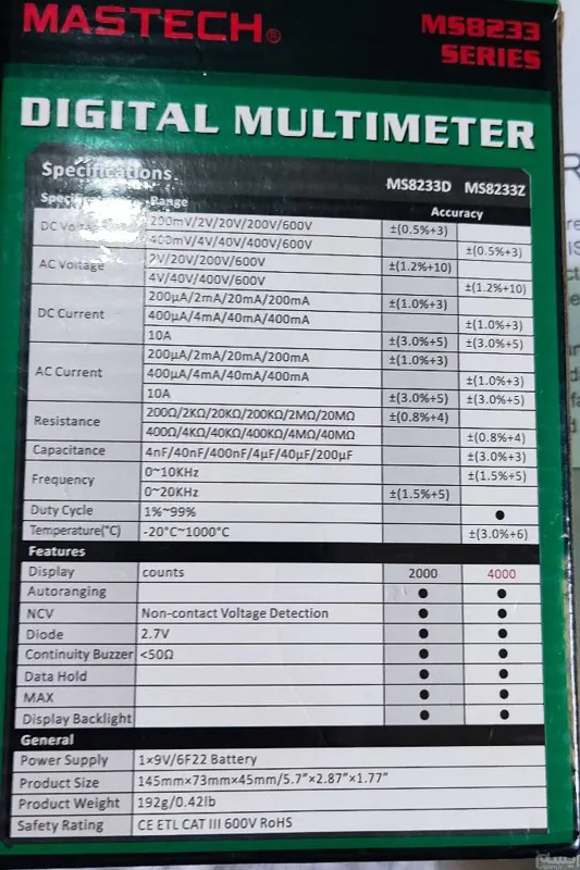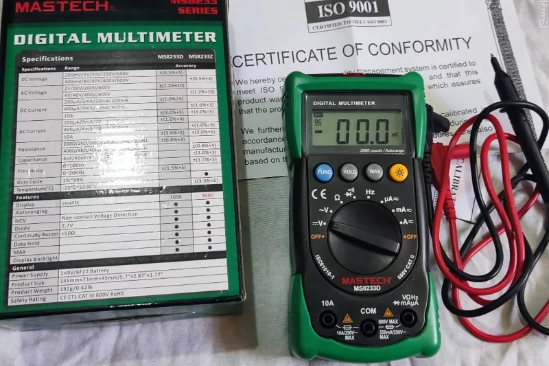 مولتی متر مستک مدل MS8233D مانند سایر مولتی مترهای گروه مستک به سفارش و تحت کنترل کیفیت Mas Power آلمان تولید شده است و دارای تاییدیه اتحادیه اروپا می باشد