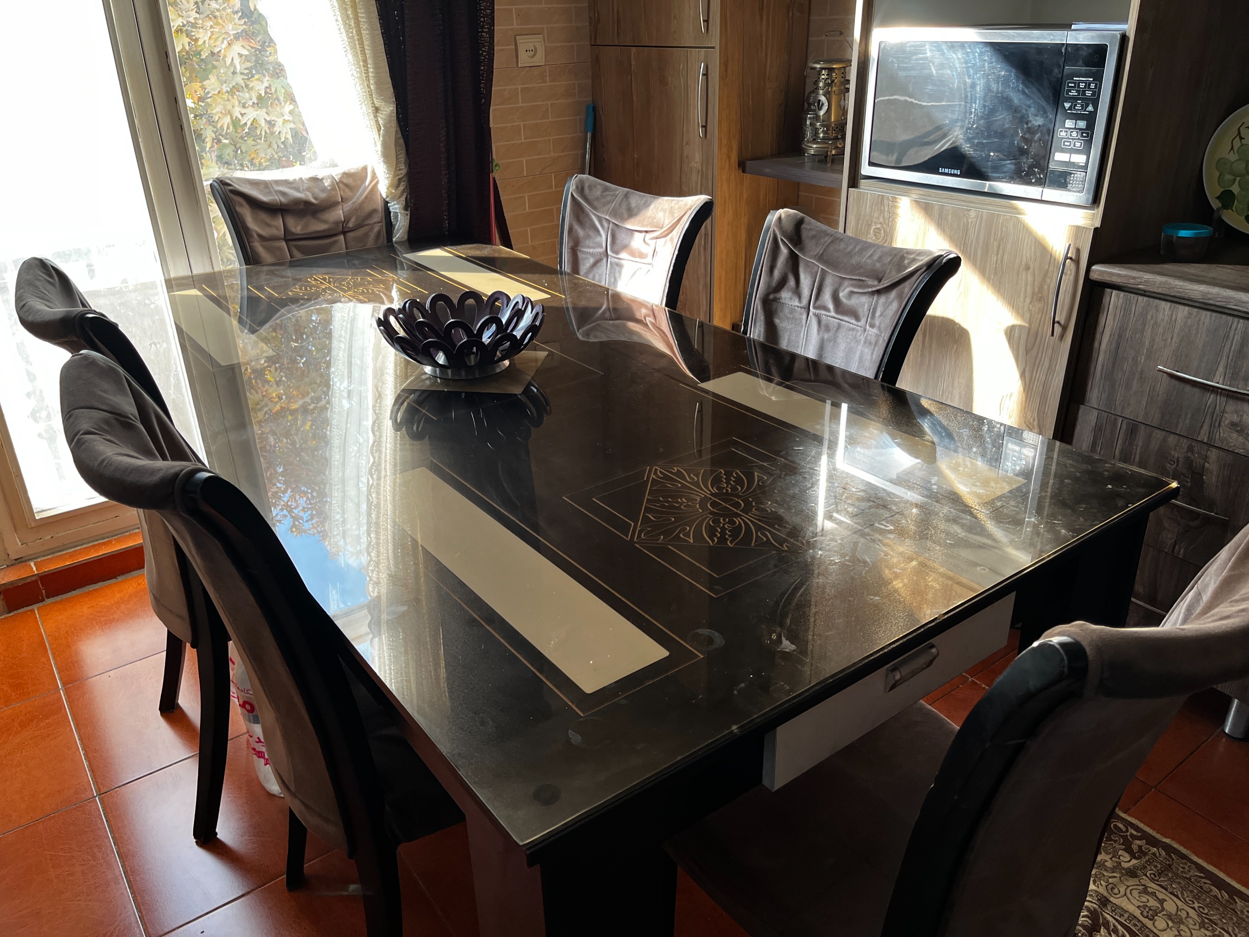 میز ناهارخوری شیشه رویی ندارد و باید جداگانه برای آن شیشه تهیه کنید
