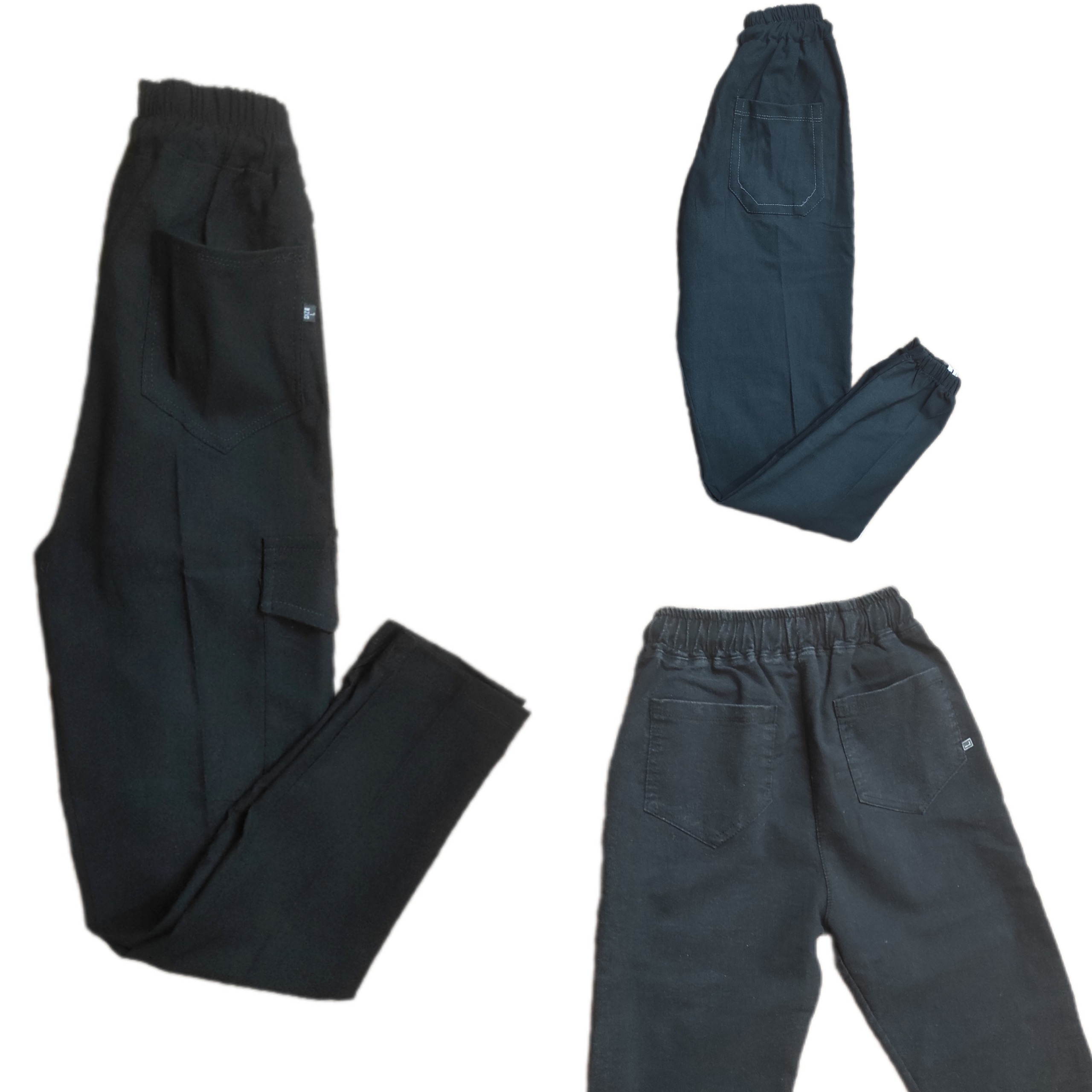 شلوار مشکی کتان کش پنج جیب/دو جیب کنار؛دو جیب سر زانو؛یک جیب پشت