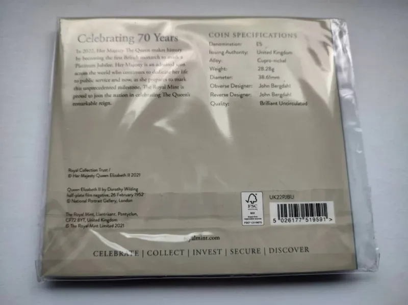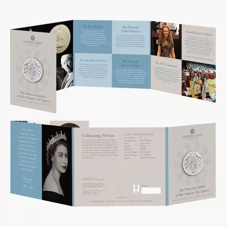 در سال 2022، بریتانیا جشنی با عنوان Platinum Jubilee برگزار کرد؛ رویدادی بی همتا که برای بزرگداشت 70مین سال سلطنت ملکه بود. این سکهٔ رسمی منتشرشده توسط Royal Mint، یادگاری است دقیق، معتبر و مستند از آن لحظه تاریخی.