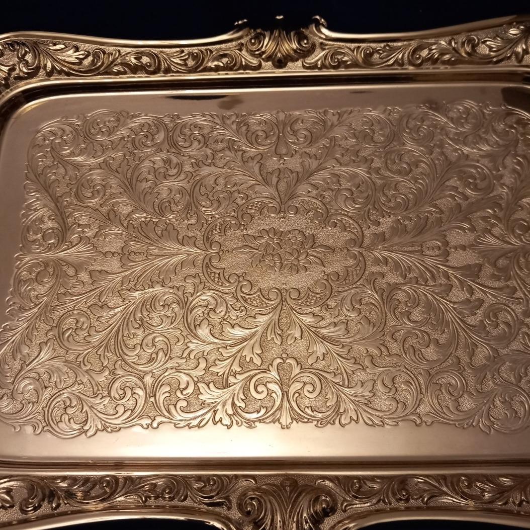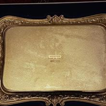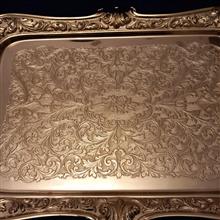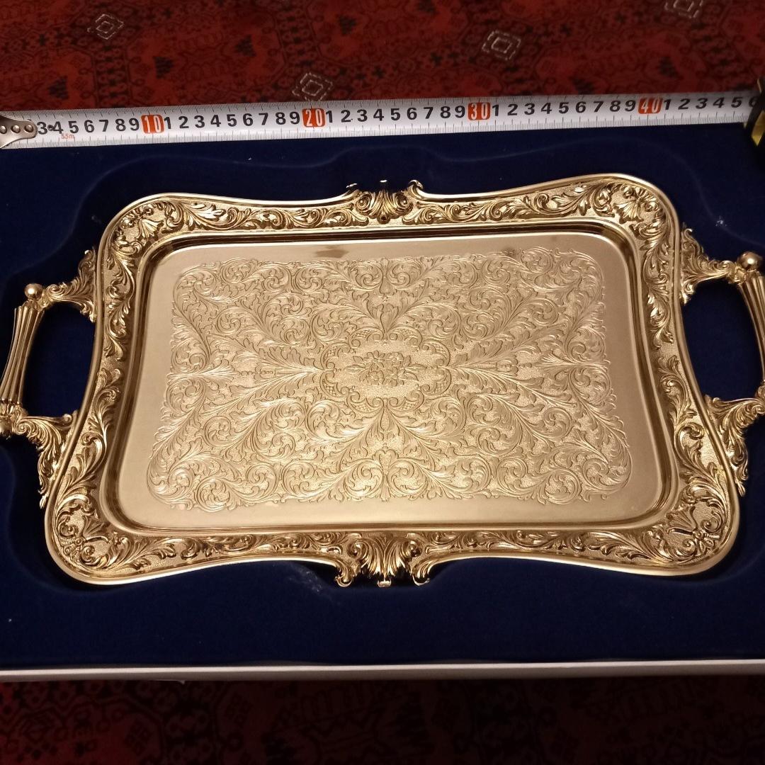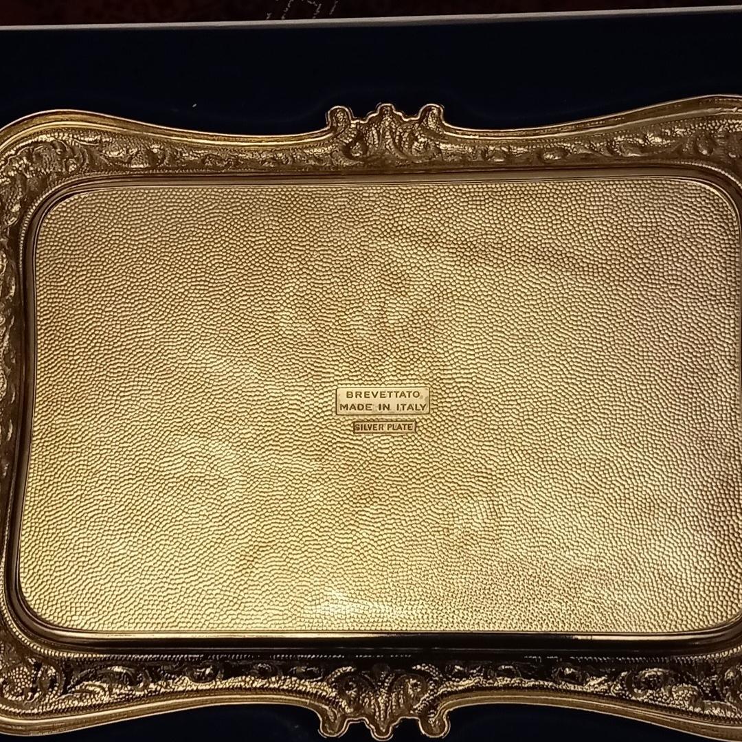 سیلورپلیت برند قدیمی BREVETTATO ایتالیا/ دارای قلم زنی زیبا/ نقره عیار پایین ایتالیا/ سایز بزرگ در تصاویر متر گذاشته شده تا سایز رو متوجه بشوید/ بسیار کار خاص و آنتیکی میباشد/ به سختی بتوان حتی در آنتیک فروشی های تهران با این کیفیت و با جعبه فابریک خودش پیدا کرد/