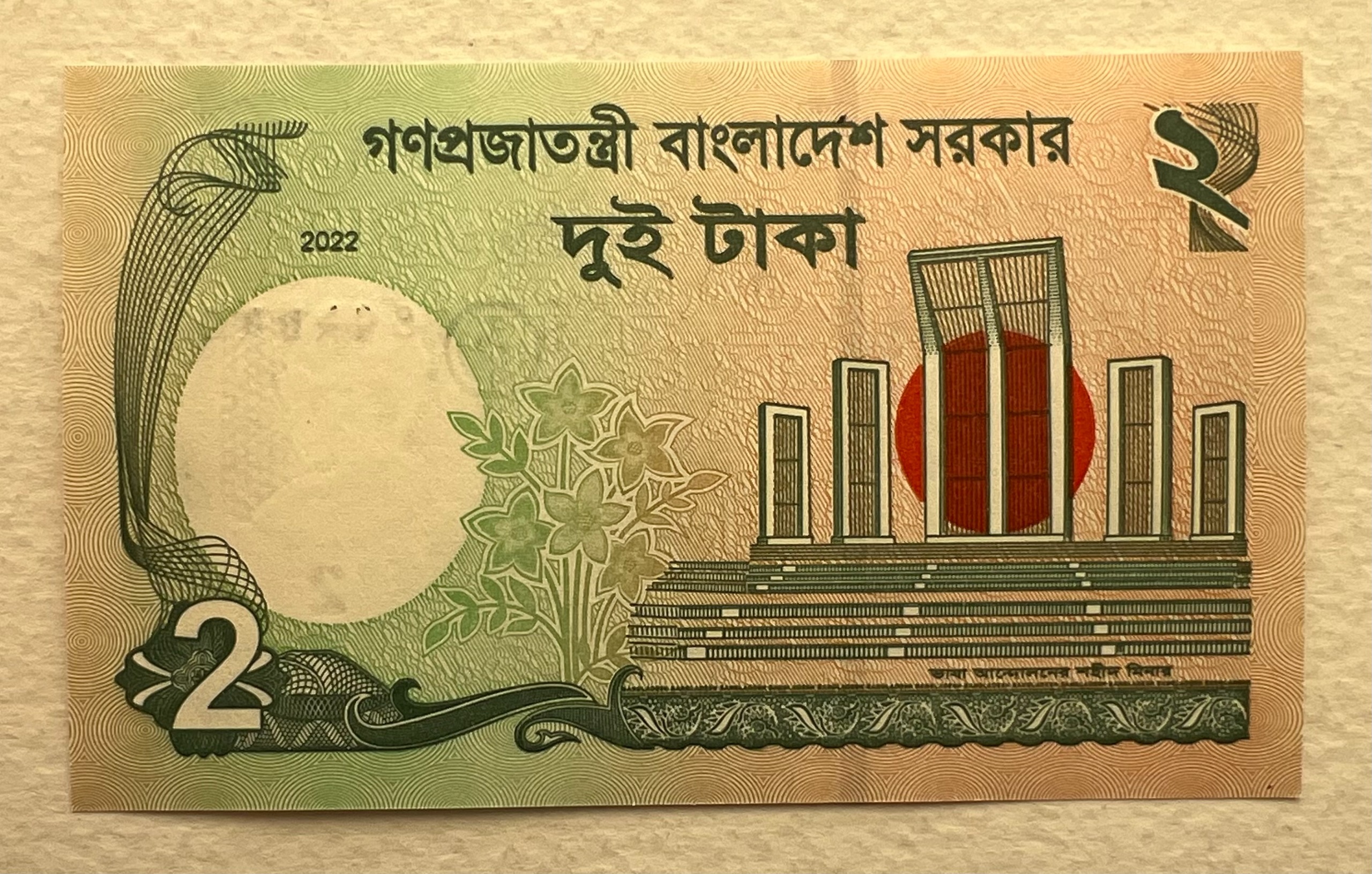 تک اسکناس کمیاب خارجی 2 تاکا بنگلادش 2016 (بانکی)