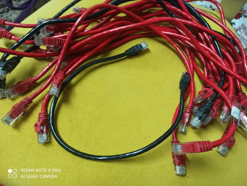 تعداد 40عدد کابل شبکه جنس قدیمی درجه یک که مشابهش تو بازار نیست 24عدد نیم متری همین رنگ قرمز و مشکی براق و مابقی کابل بالای یک متر تا دو و نیم متر