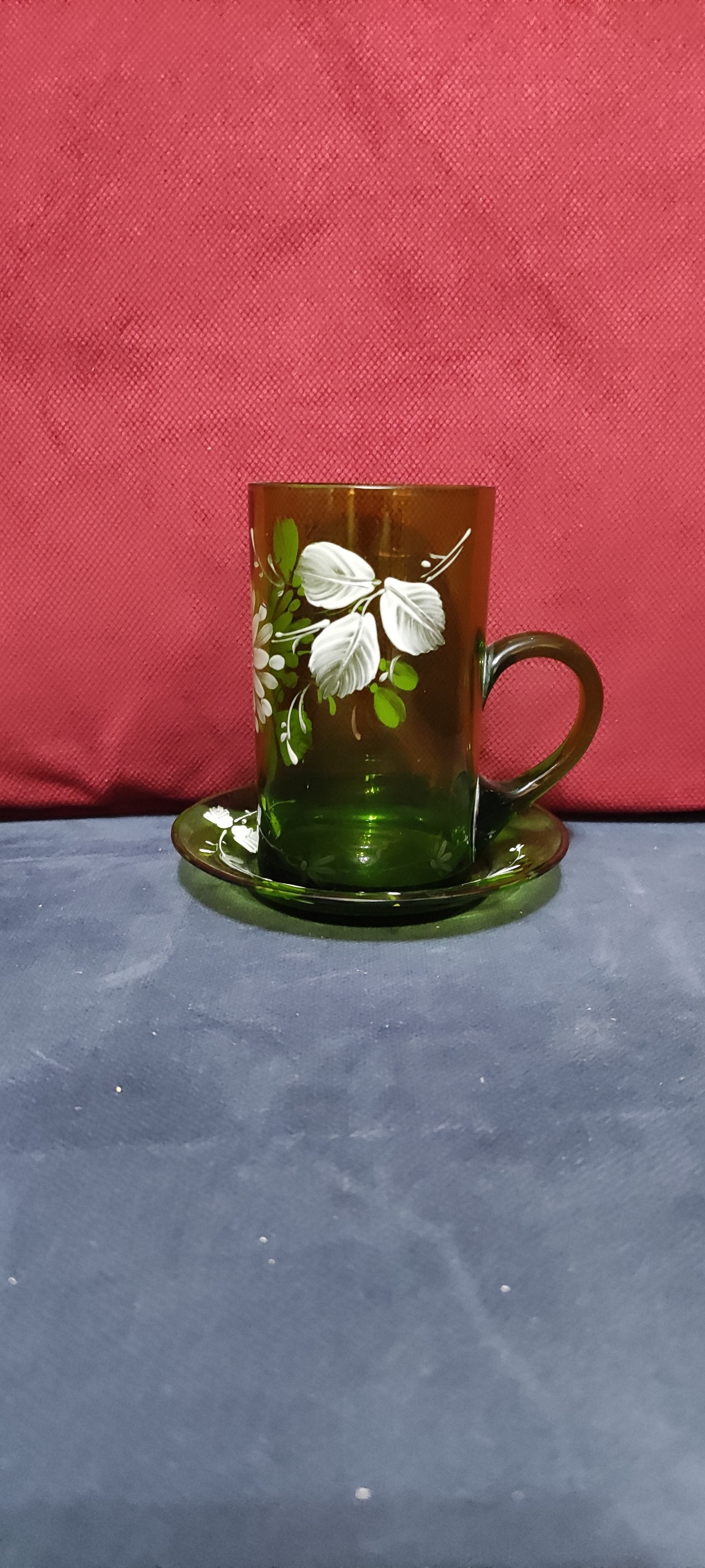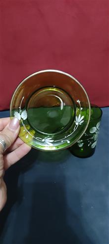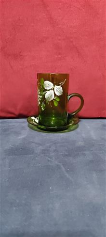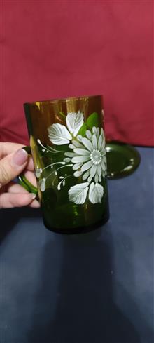لیوان و زیر لیوانی نقاشی دست قاجاری بسیار نایاب زیبا، آنتیک و کلکسیونی