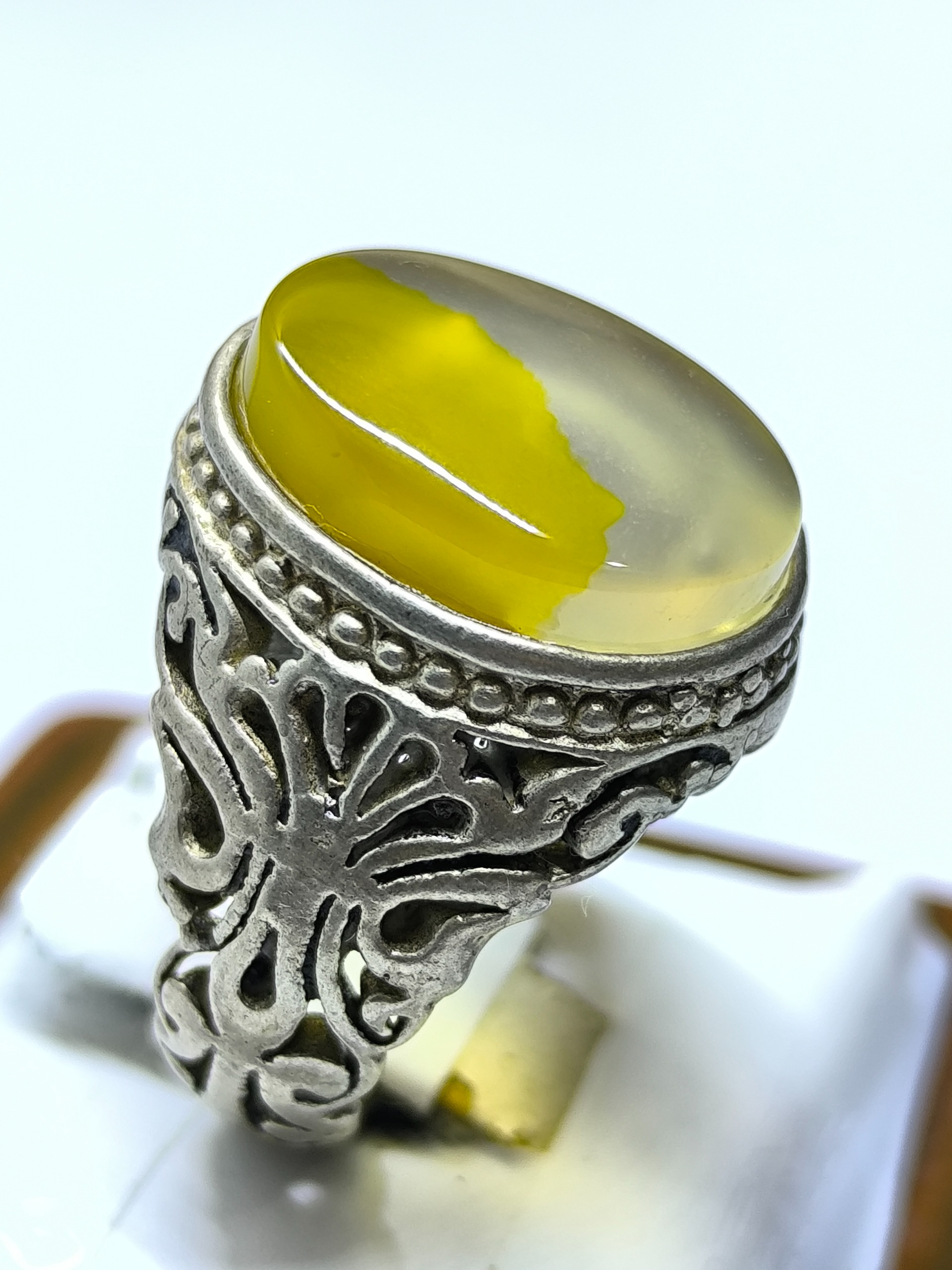انگشتربسیار زیبا و لاکچری عقیق زرد یمانی