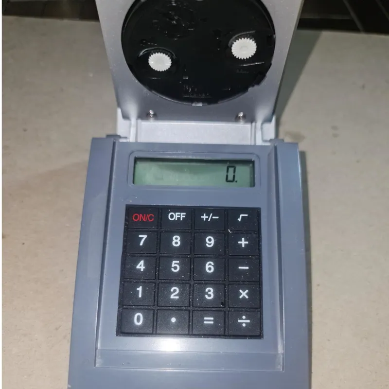 یک دستگاه ساعت رومیزی عقربه ای بسیار شیک همراد با ماشین حساب لولائی زیر آن هر دو سالم و قابل استفاده نو نو رنگ صفحه ساعت سبز یشمی بسیار بسیار شیک