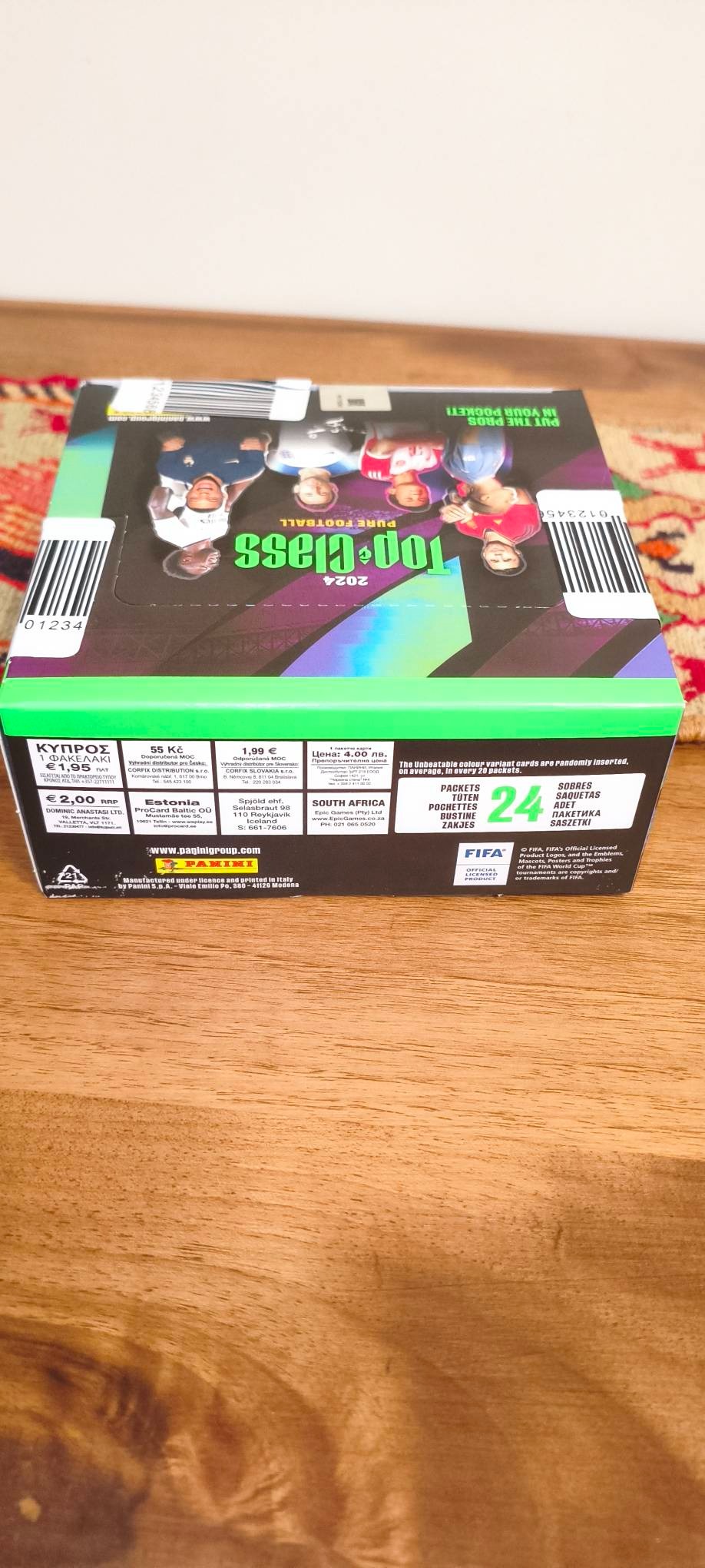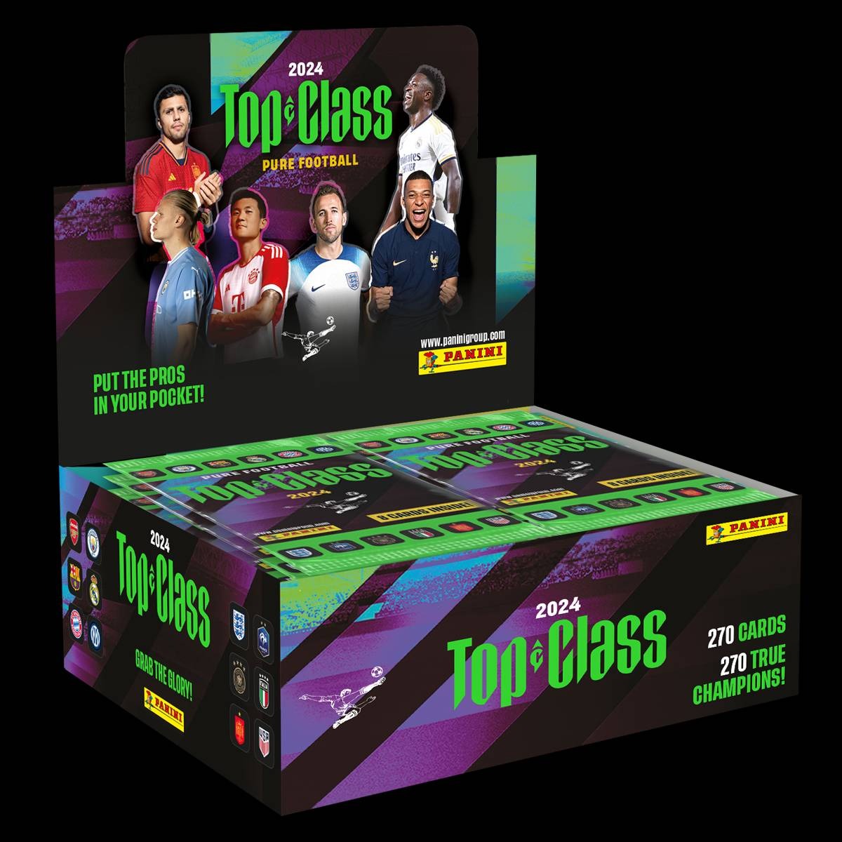 باکس کامل شامل 24 پک 8 تایی کارت فوتبالی Top Class 2024 ایتالیایی Panini تحت لیسانس FIFAباز نشده نو