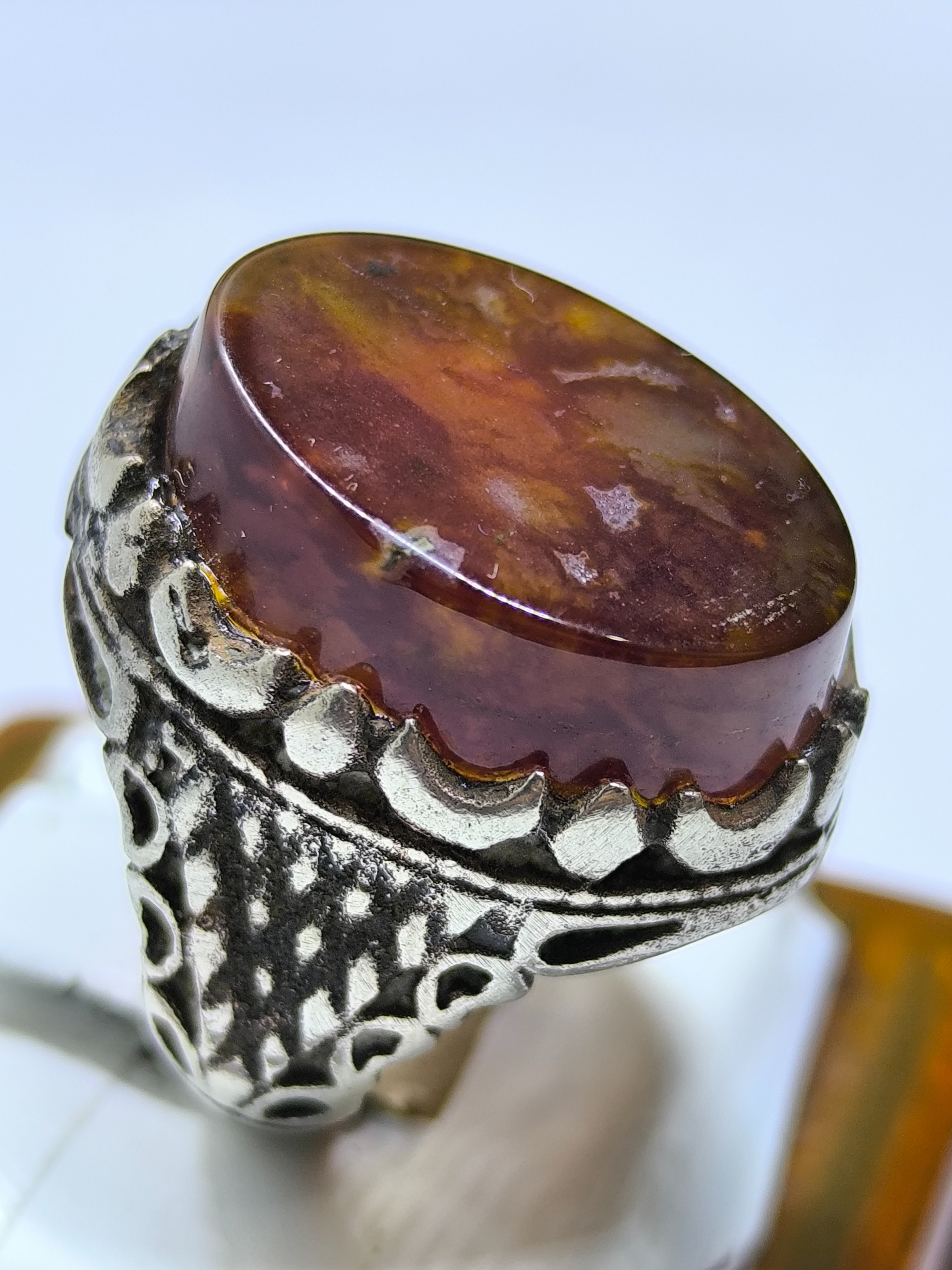 انگشتر زیبا و کلکسیونی عقیق سرخ خونبند یمانی