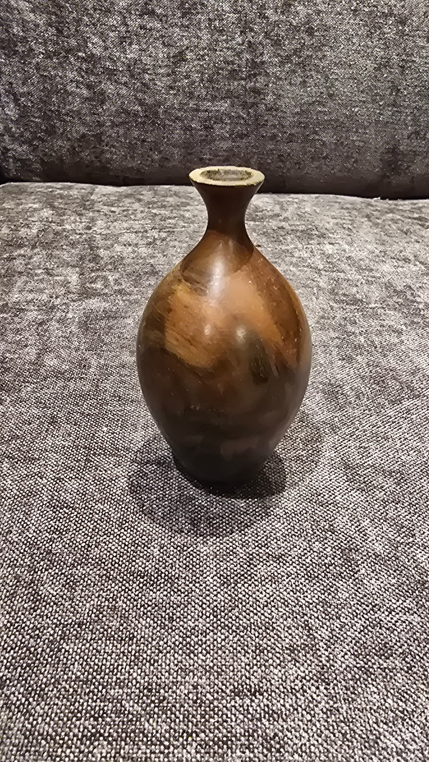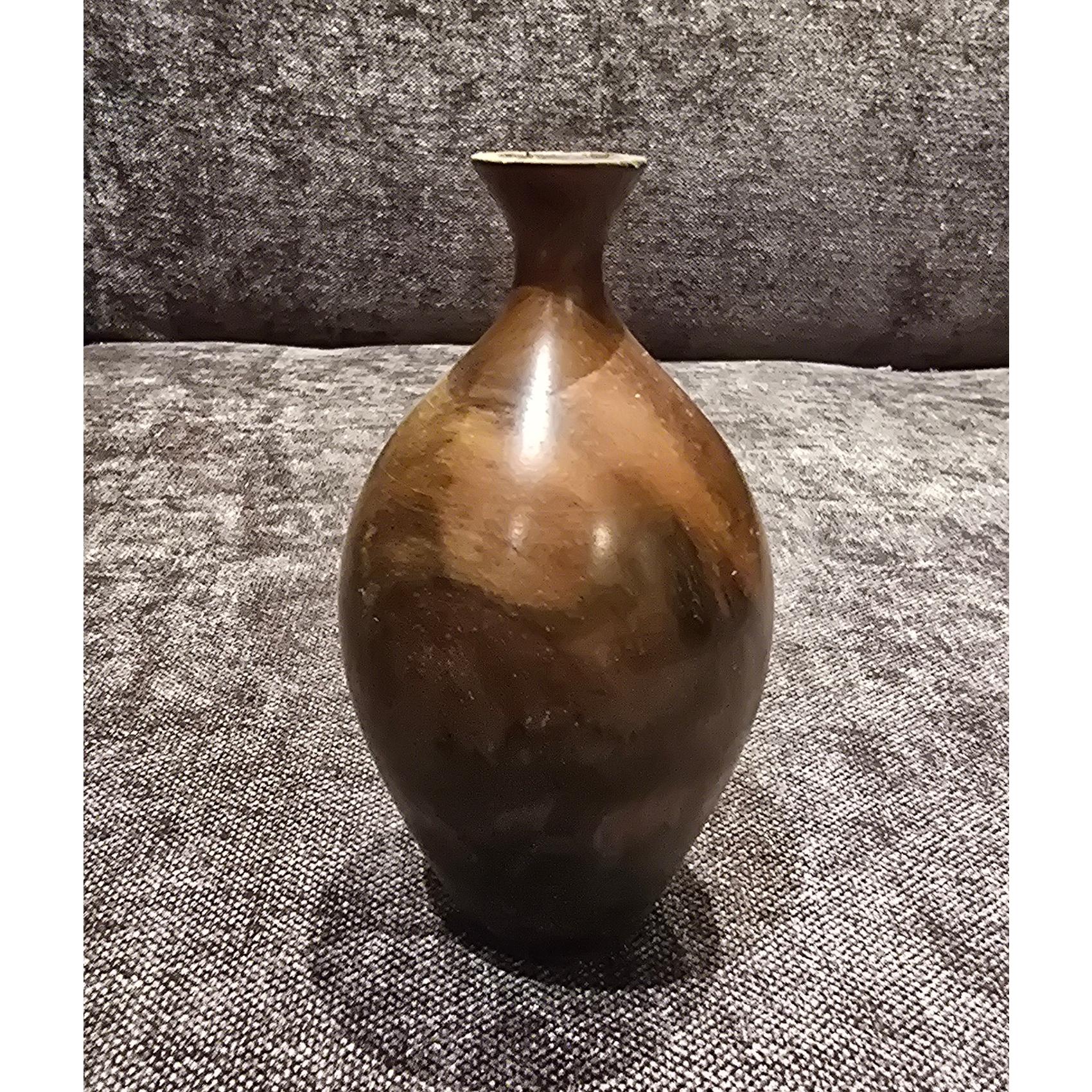 گلدان ده سانتی مینیاتوری چوبی ، خراطی بسیار ظریف با چوب گردو با نقش و نگار شگفت انگیز . دکوری و کلکسیونی و کاربردی