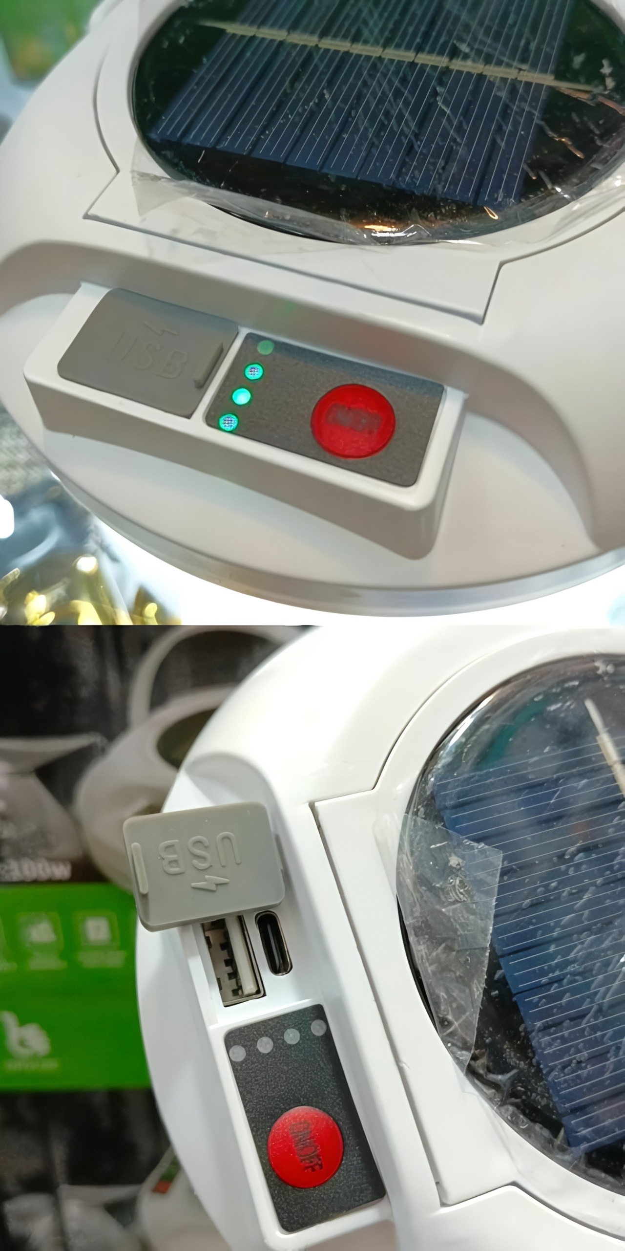 به همراه کابل شارژ تایپ C و پنل خورشیدی(5×5/8 سانتی متر) جهت شارژ باتری چراغ.