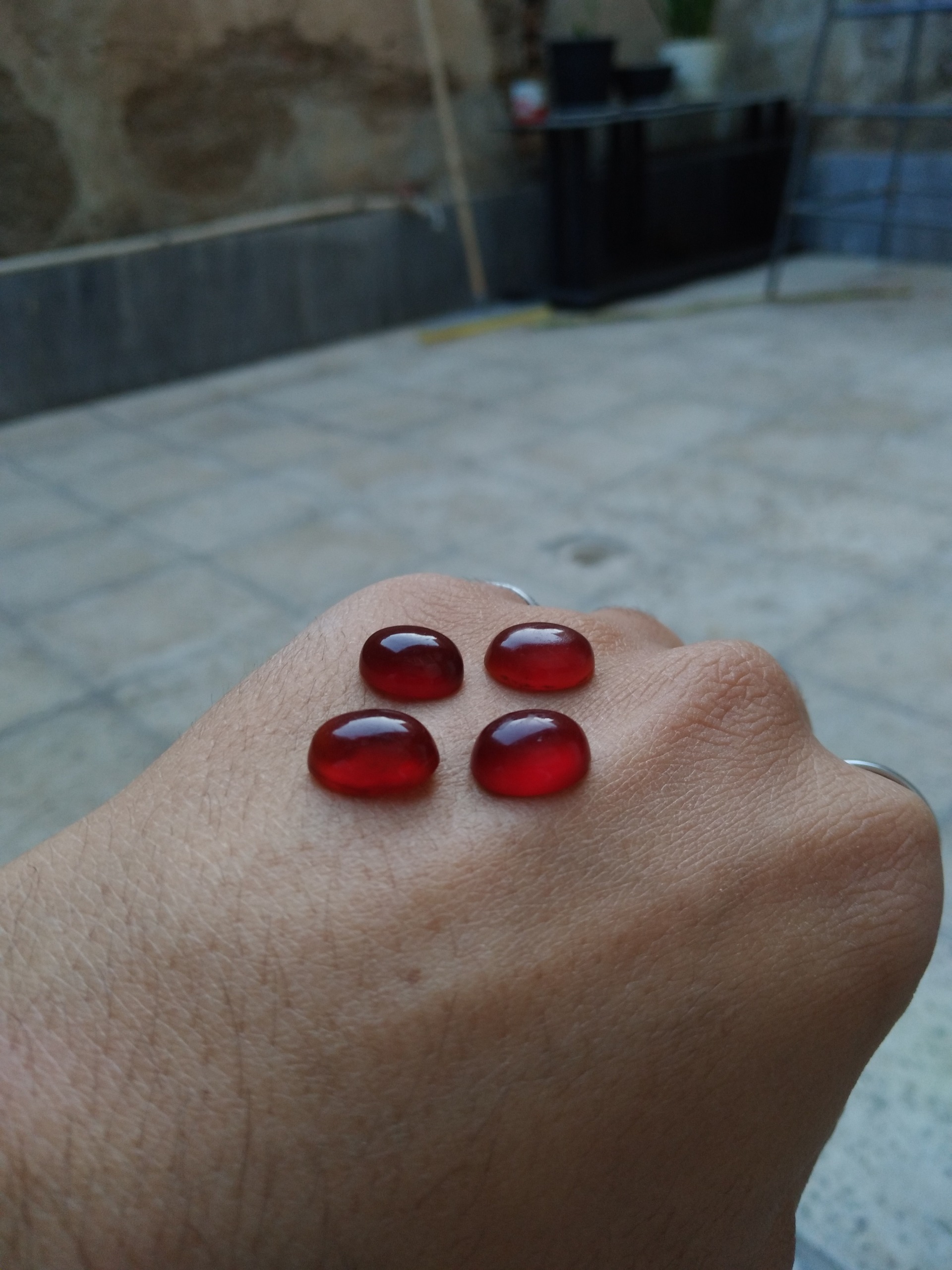 4تا عقیق کهنه یمنی سیاه تو سرخ جزع سرخ یمنی که توی بازار بسیار کمیاب و گران قیمت هستن.هر 4تا سالم کهنه بدون ترک با رنگ طبیعی آبدار و بی نظیر و بدون بهسازی من این عقیق هارواز روی انگشتر های بسیار قدیمی پیاده کردم.هر دونش توی بازار بالای2ملیون تومن قیمت دارن.