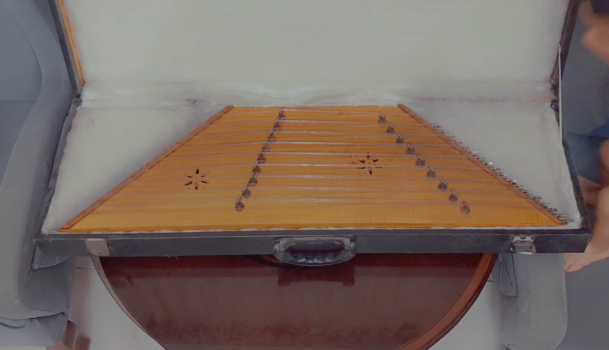 جعبه مضراب و اچار فلزی کوک سنتور با کیف سامسونتی چرمی.