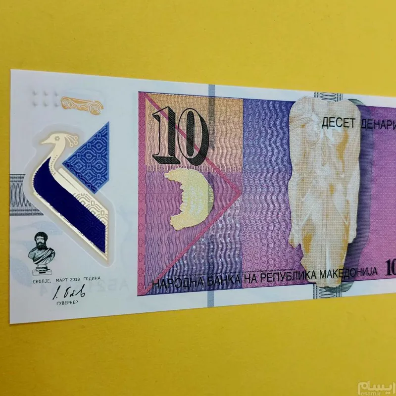 تک اسکناس مقدونیه 10 دینار پلیمری زیبای مقدونیه