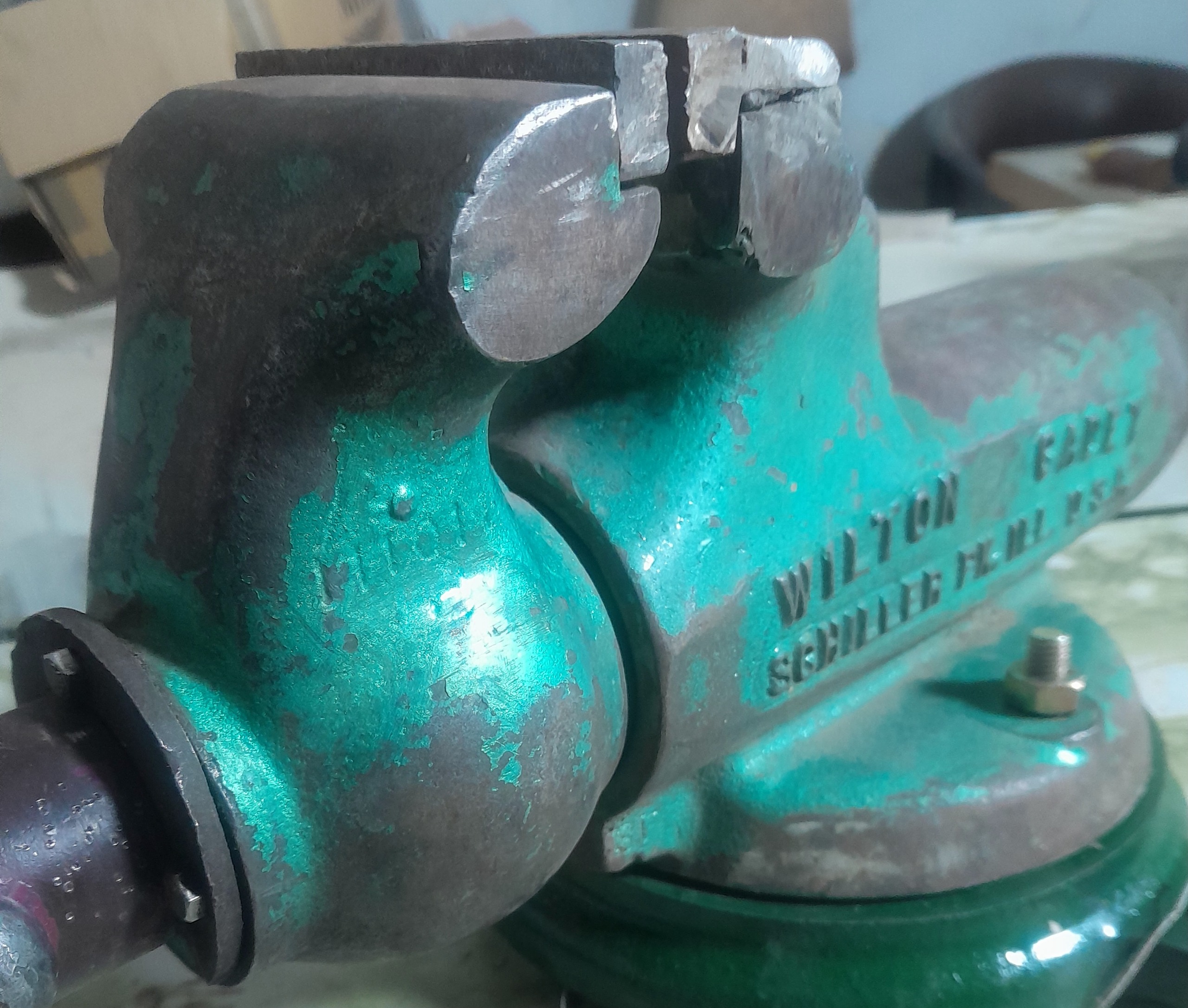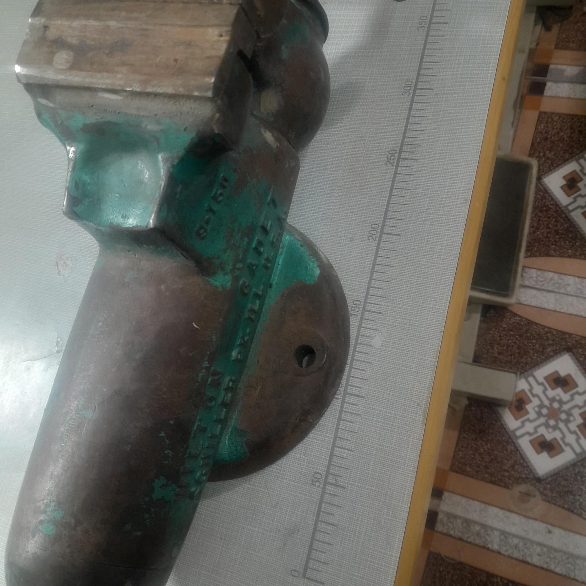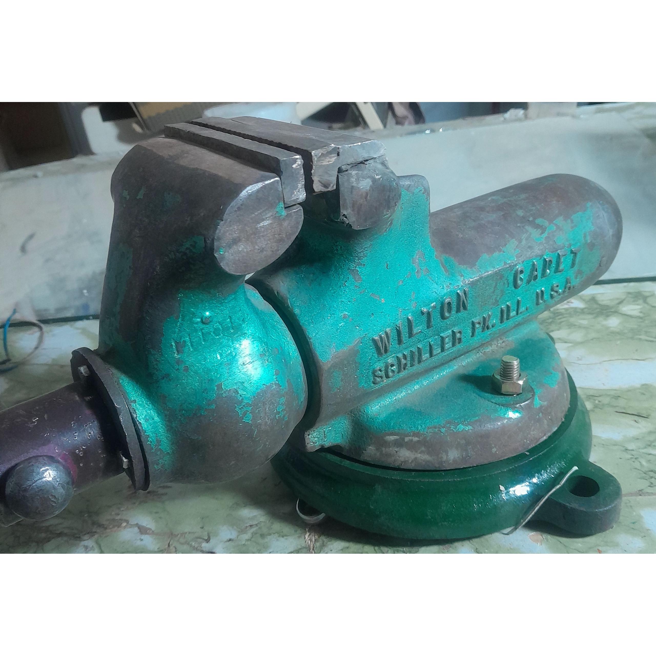 گیره رومیزی ویلتون  آمریکائی فولادی وپایه چرخشی  سایز فک ده سانت  و طول 40 سانت وزن حدود بیست کیلو گرم  برابر با  عکس های گرفته شده  بدون جوش  و شکستگی  روان و صحیح و سالم