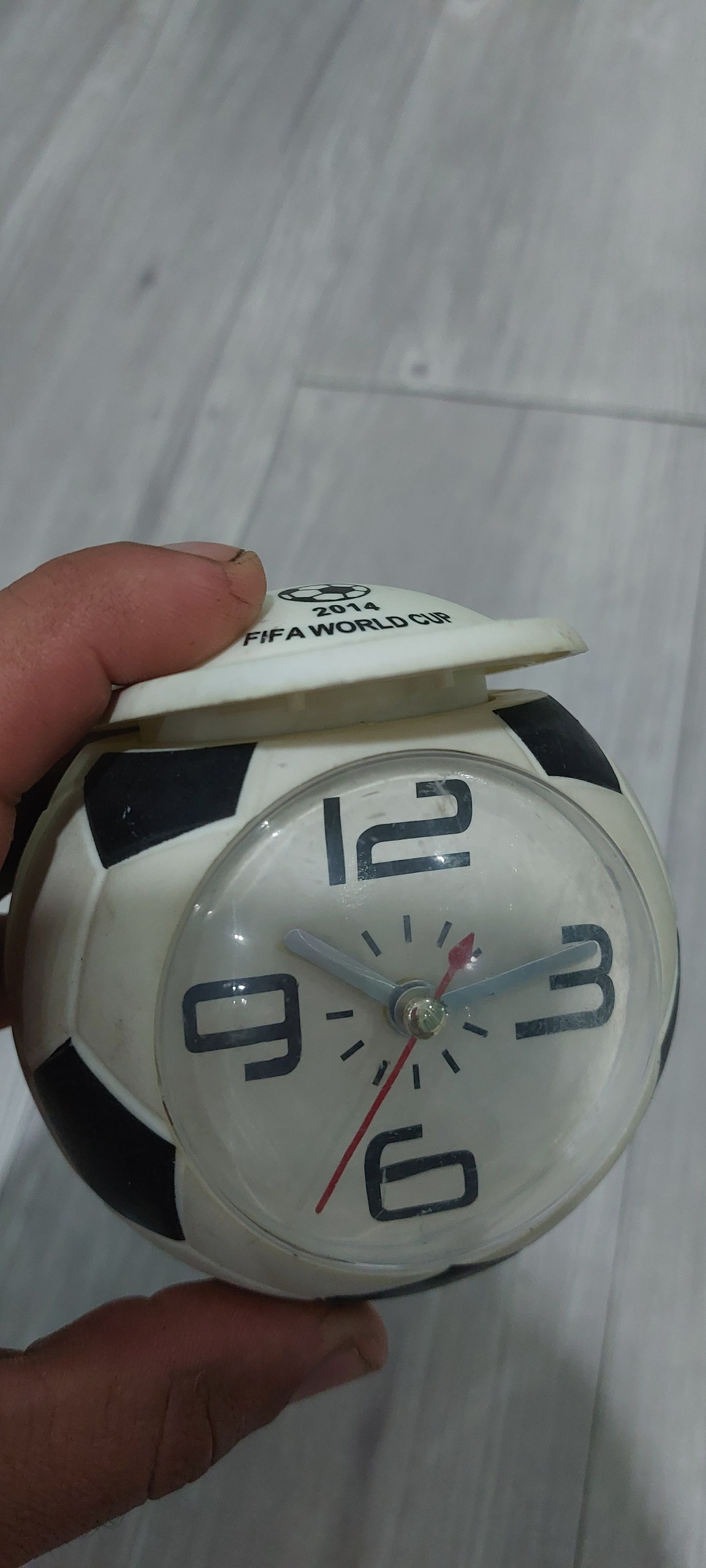 ساعت رومیزی کوچک طرح توپ سالم زنگدار با فشار دادن کلاهک به سمت پایین زنگ ساعت قطع میشود مناسب برای علاقمندان به فوتبال.