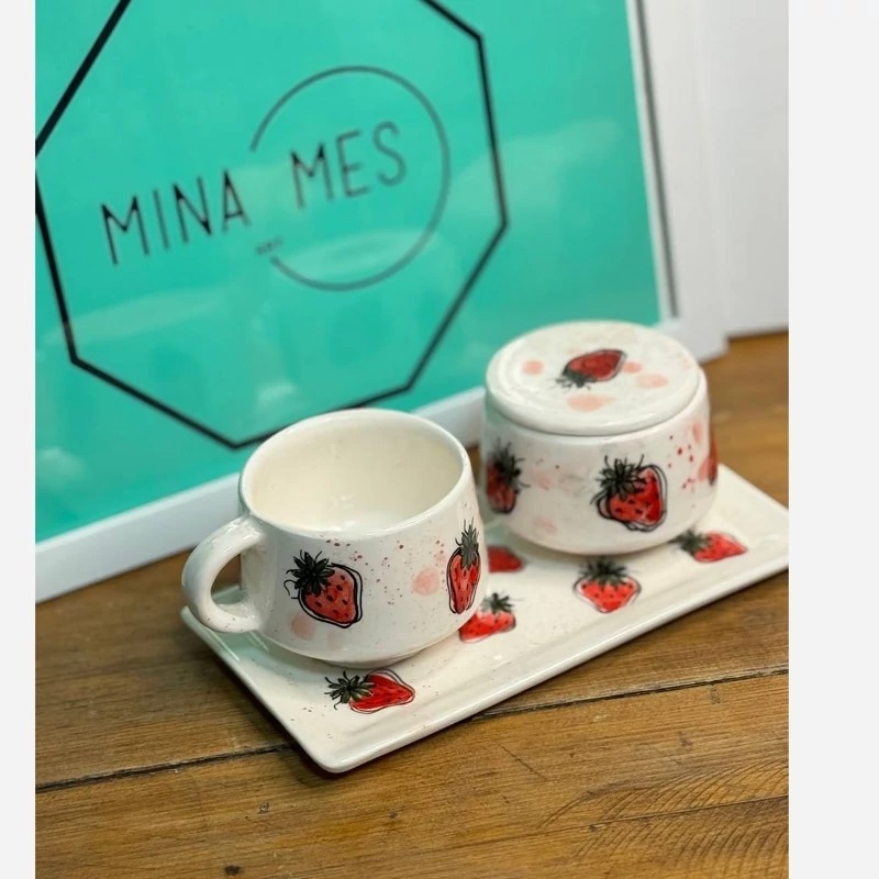 ست سرامیکی تک نفره توت فرنگی
