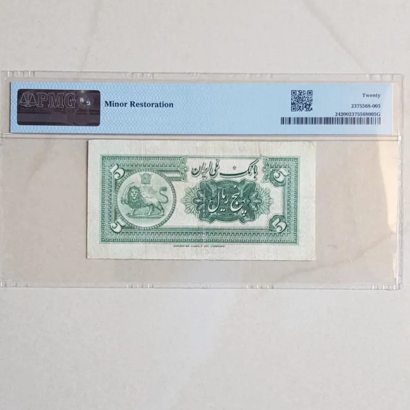 اسکناس گرید شده پنج ریالی با توضیحات سال1313