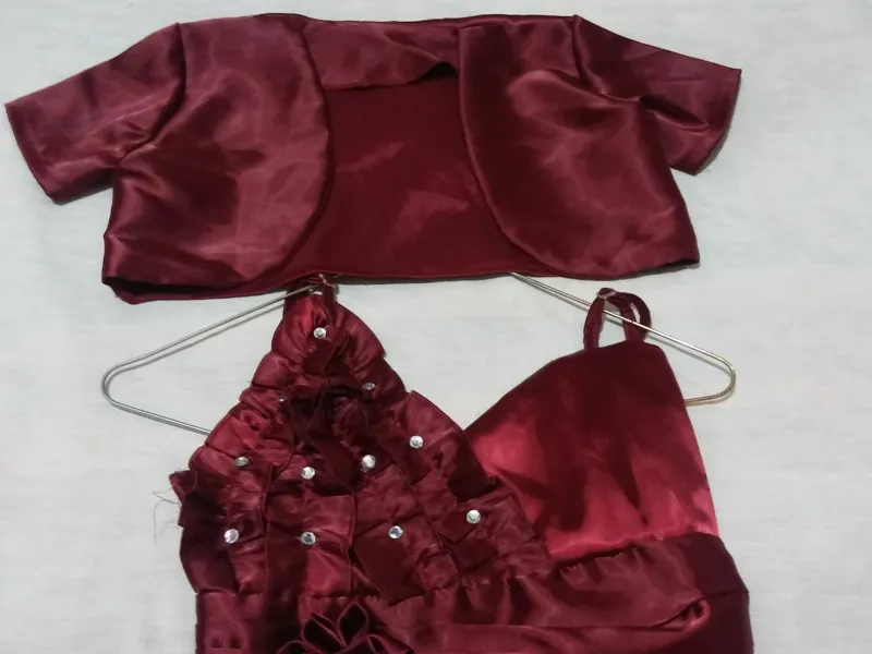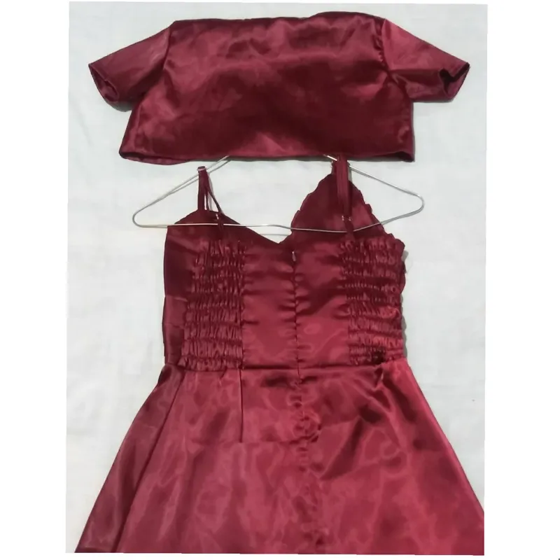 پیراهن مجلسی ساتن مخملی قد لباس حدود 90 سانتیمتر و سایزی که روش زده سایز 3 هست.عکس های بیشتر خواستید پیام بدید. رنگ لباس طبق تصاویر هست
