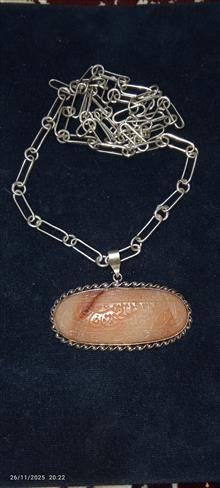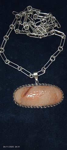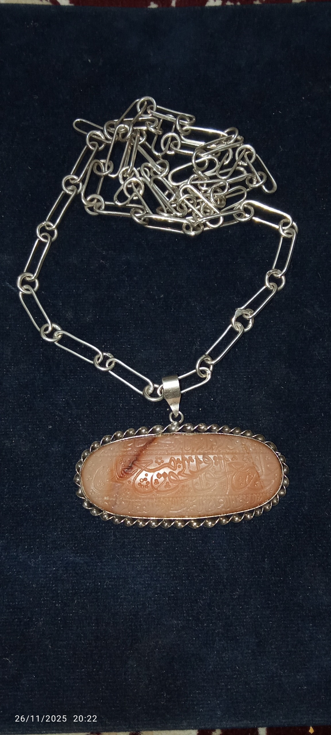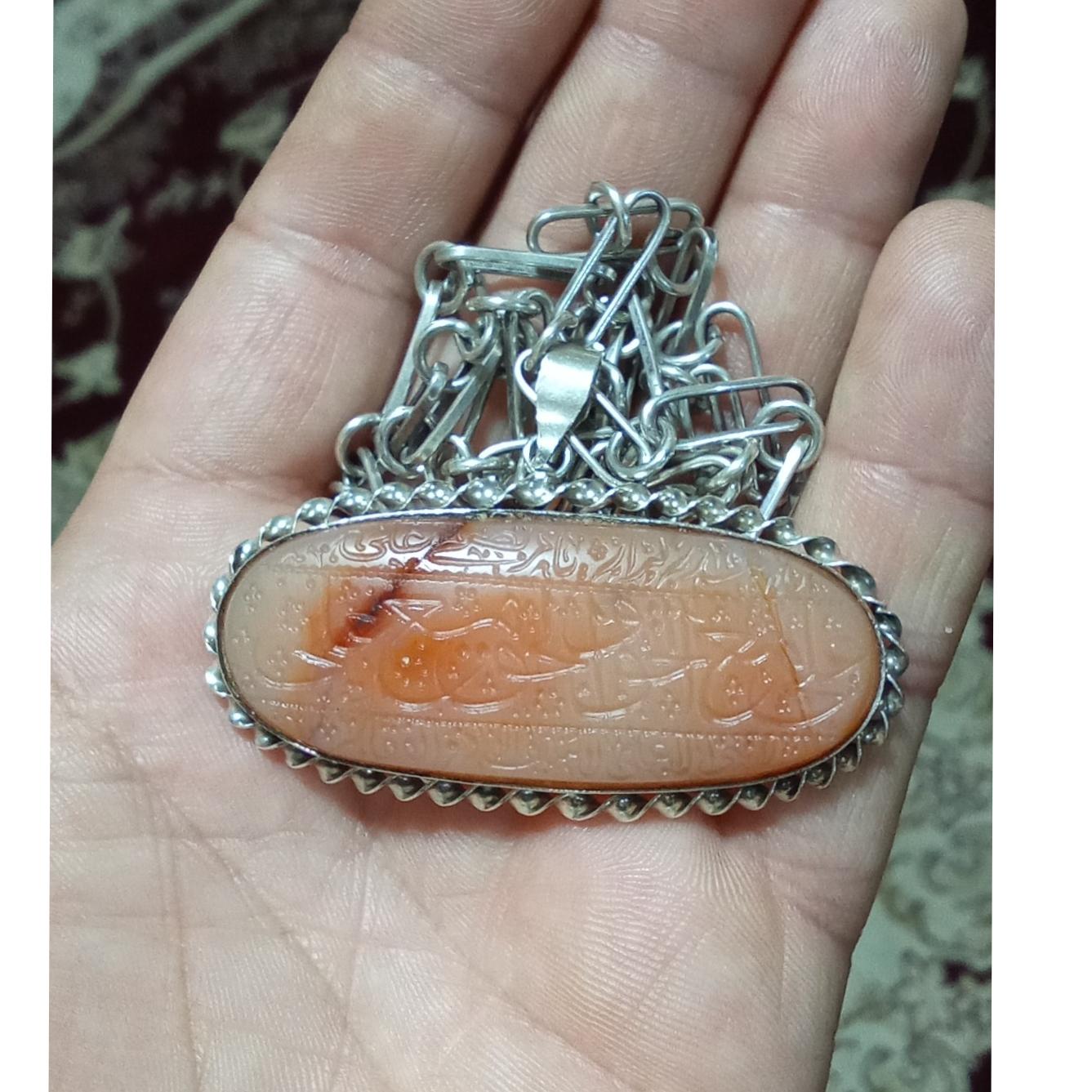 عقیق وخط کهنه قواره دار زنجیر پلاک نقره پنبه باتشکر