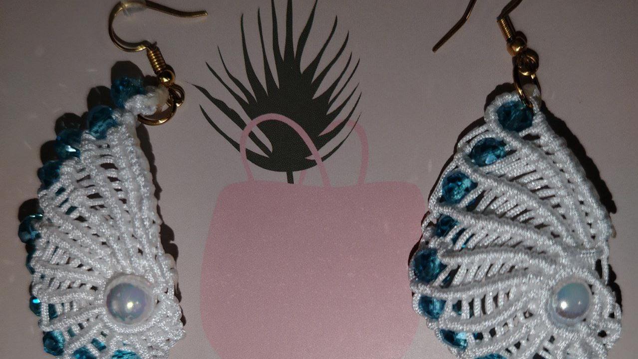 گوشواره میکرومکرومه بهمراه کریستال آبی