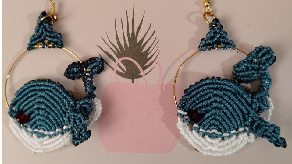گوشواره میکرو مکرومه طرح نهنگ بسیار زیبا