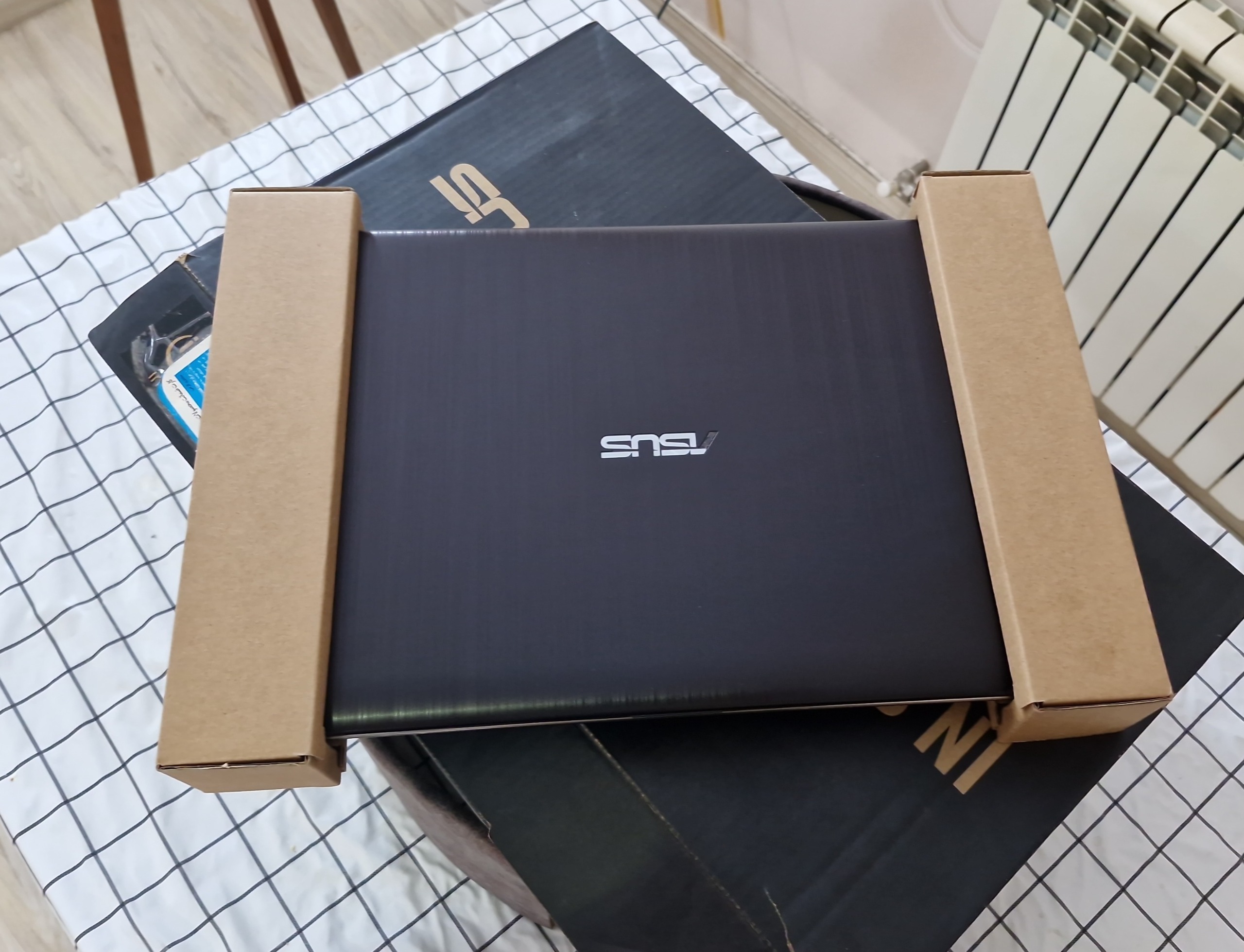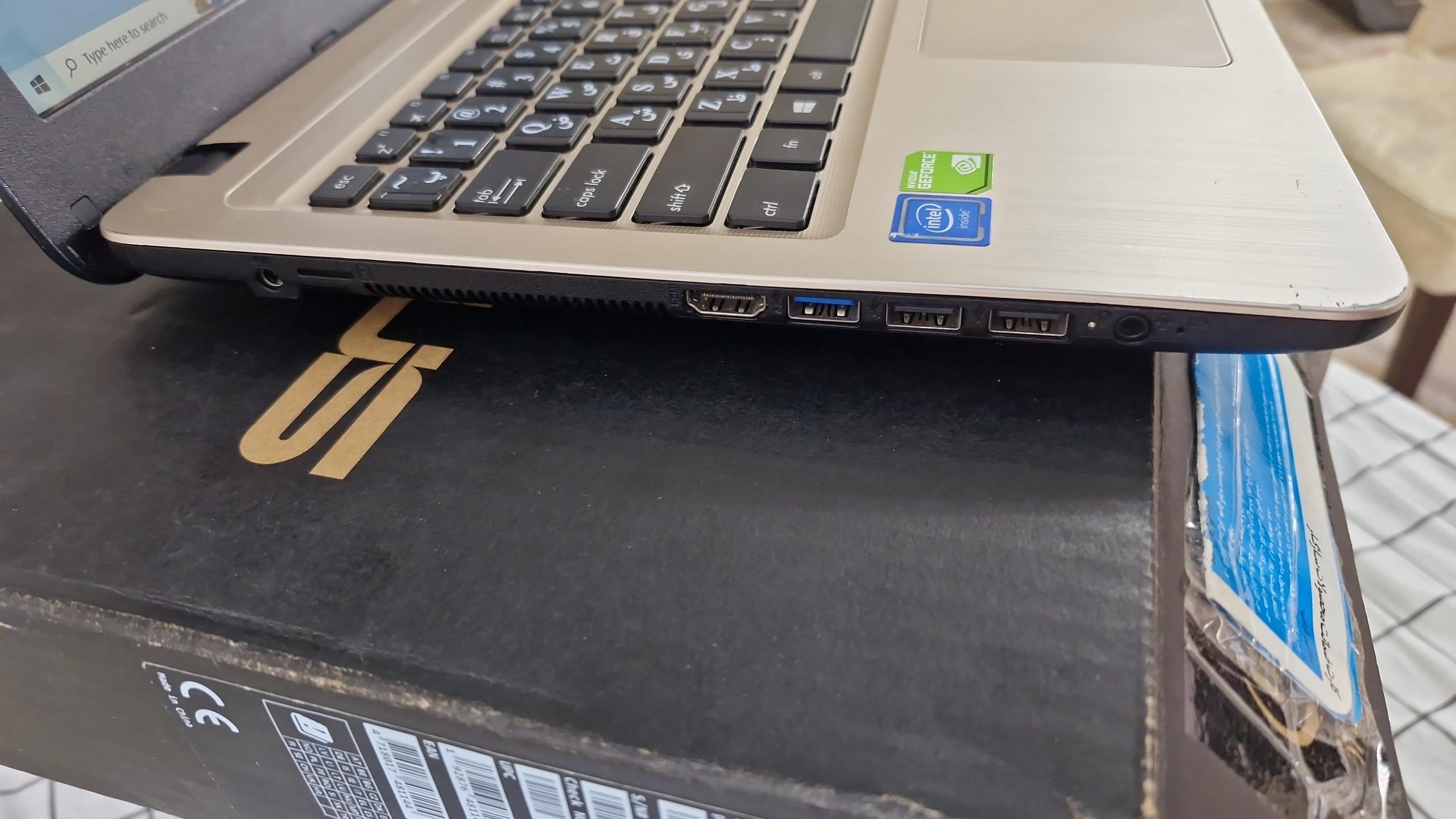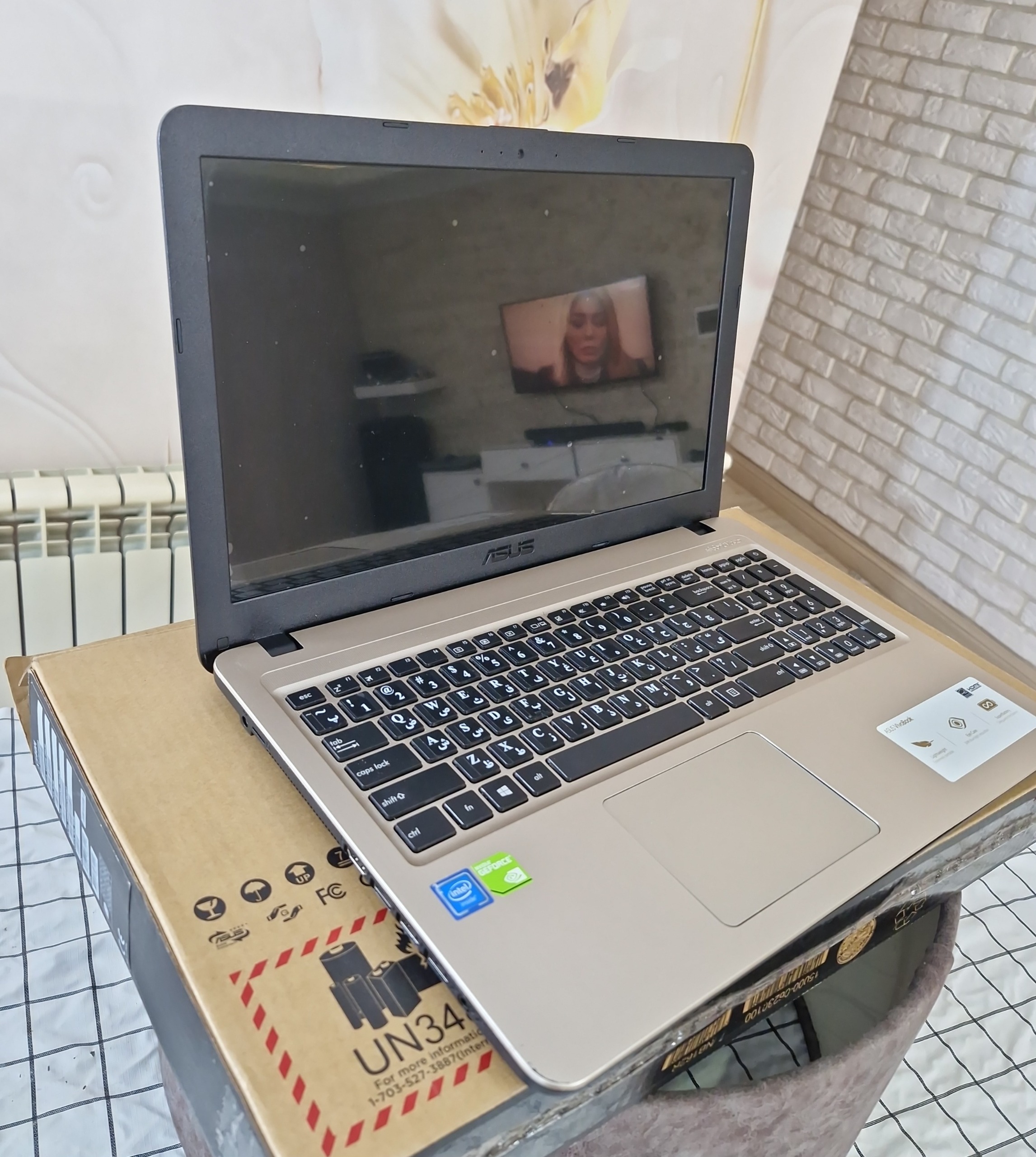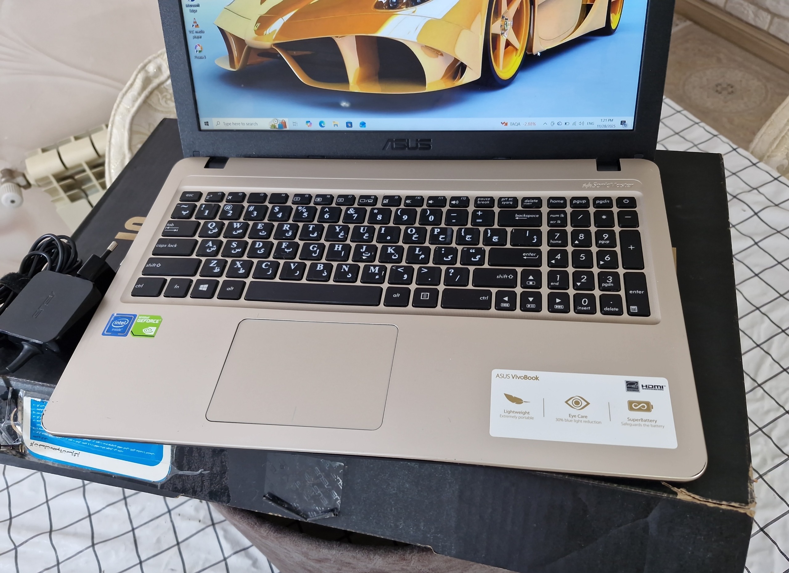 یک دستگاه لپ تاپ ایسوس ،اطراف کیبورد طلایی و قاب اصلی قهوه ای پررنگ سوخته 15.6 اینچ