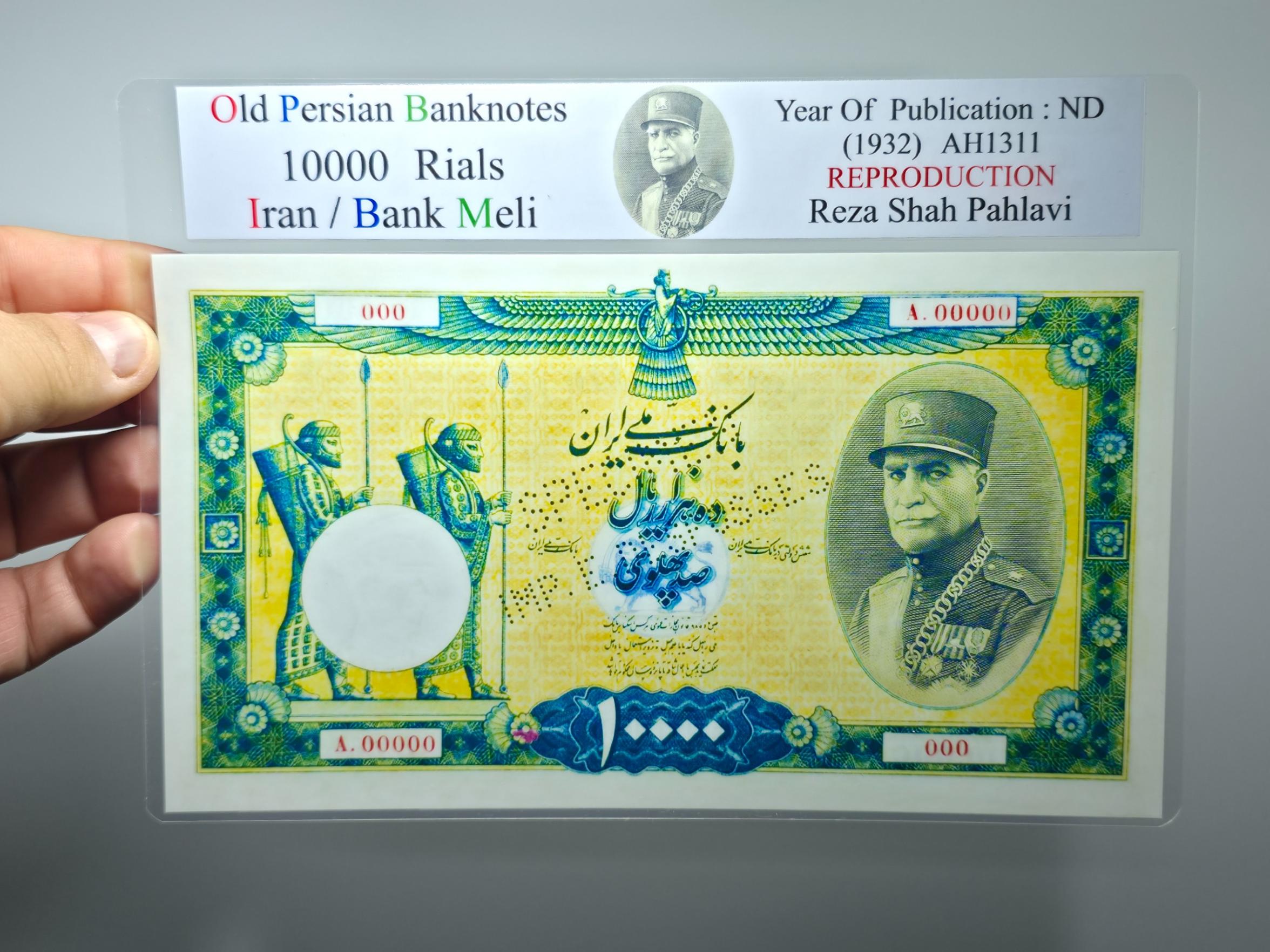 10000 ریال نمونه کلاه بزرگ رضاشاه فیلگران پیدا