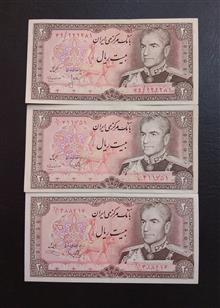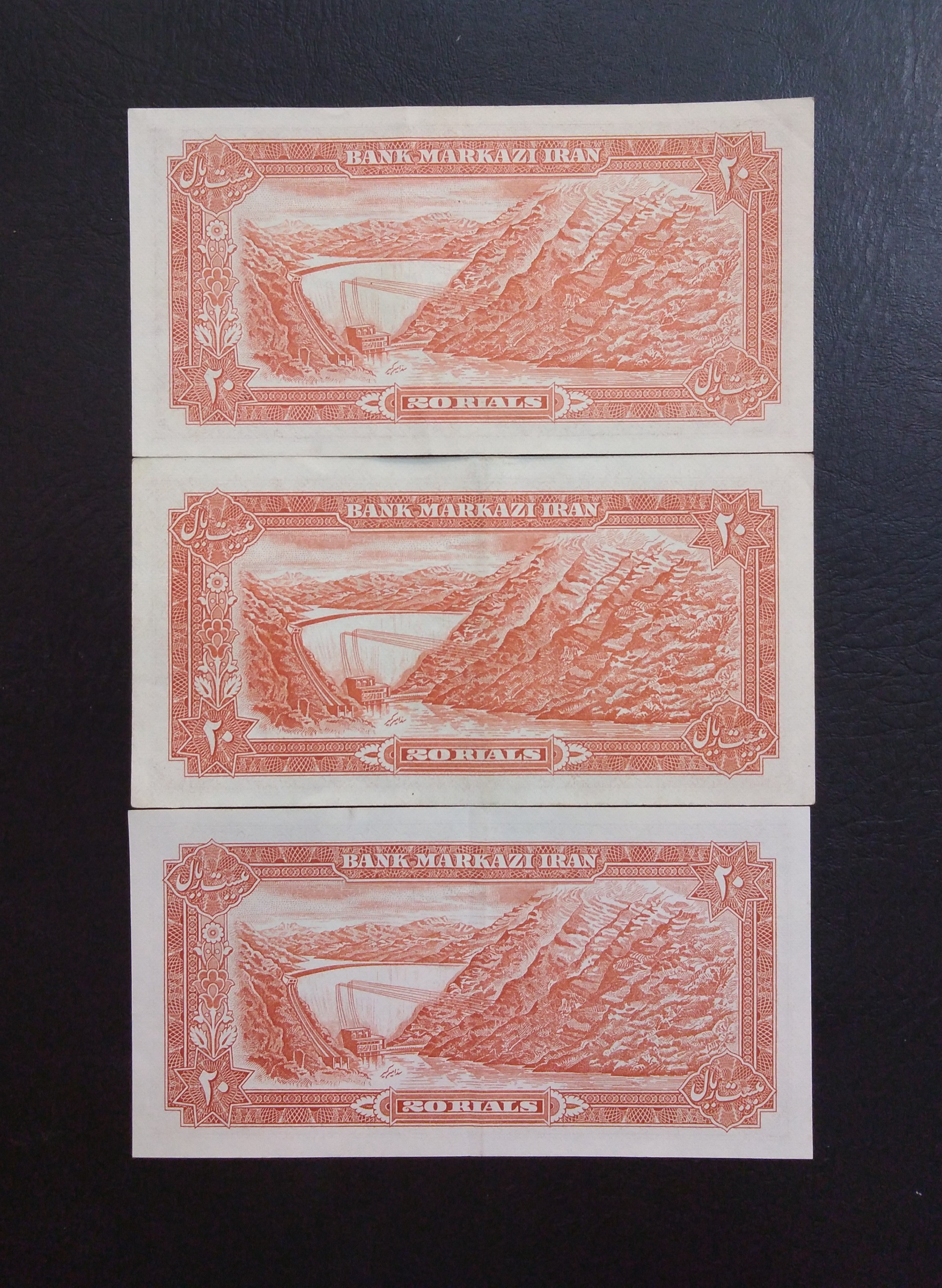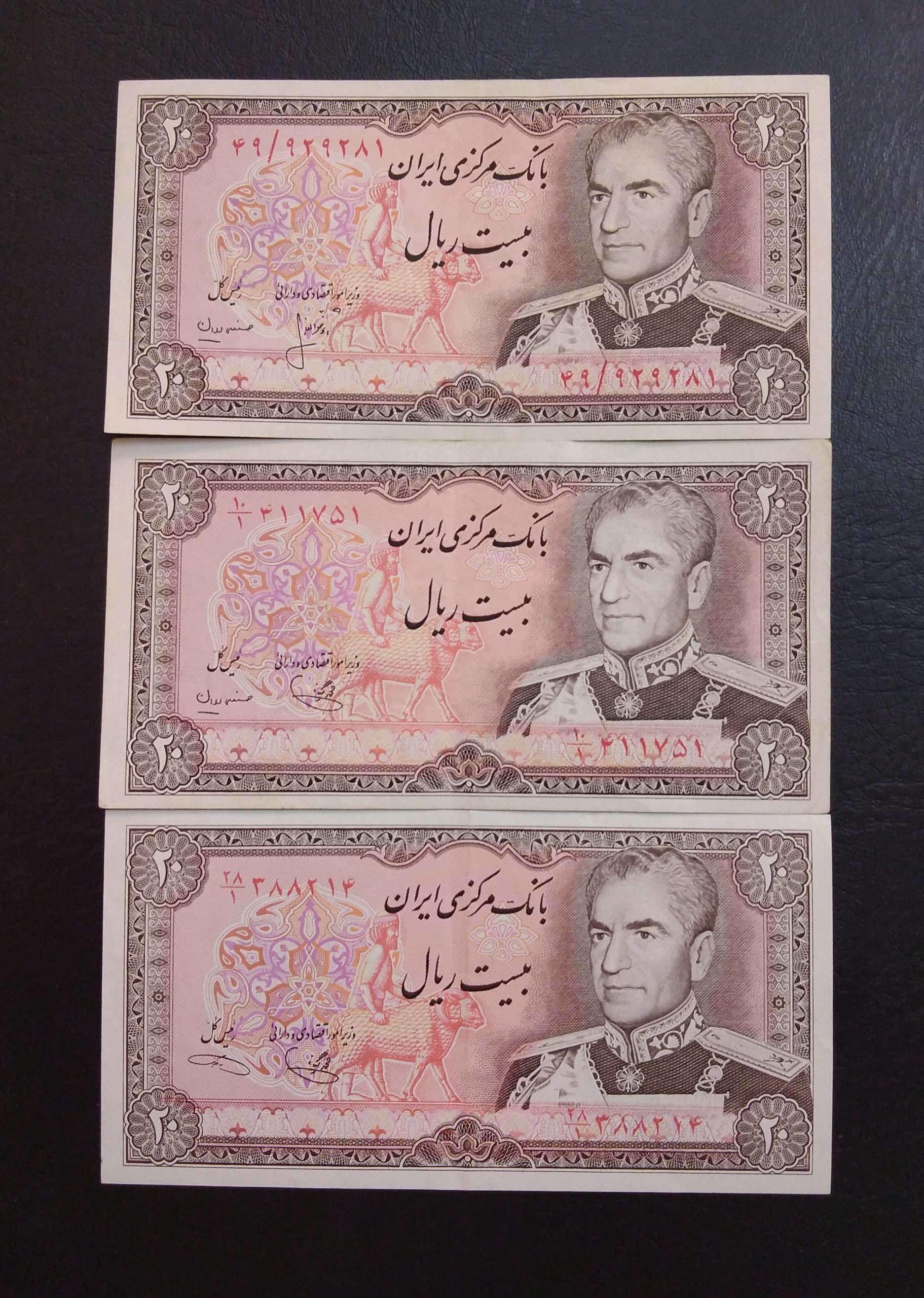 3 اسکناس 20 ریال پهلوی با 3 امضای مختلف