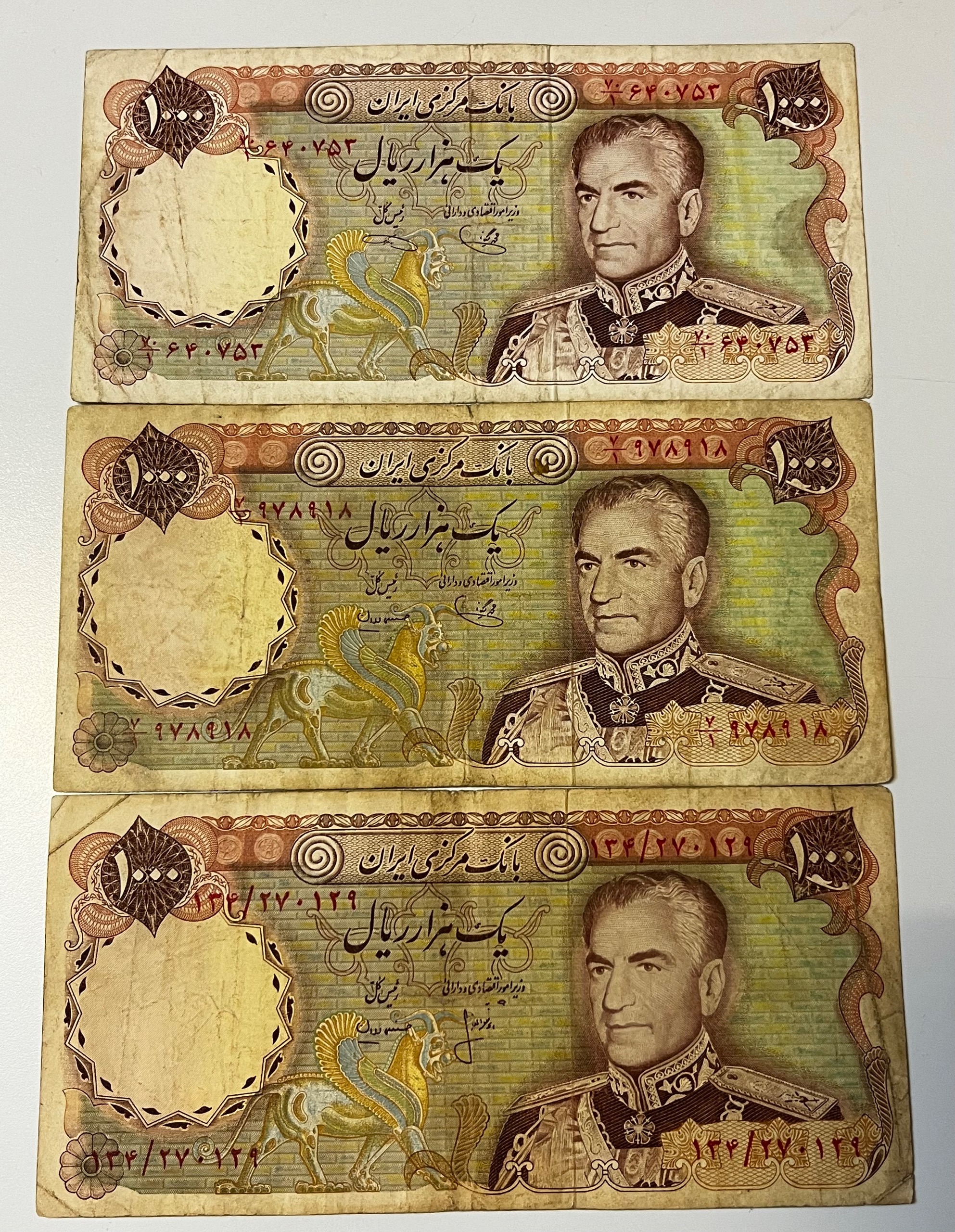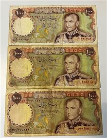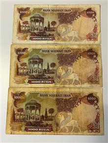 3 قطعه 1000 ریال با 3 امضای متفاوت