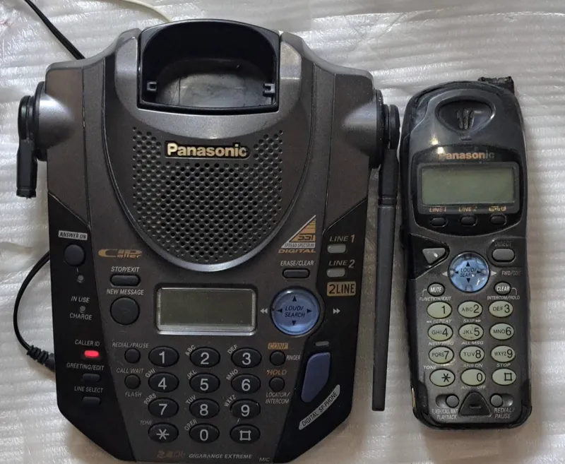 تلفن بیسیم پاناسونیک 2خط پایه بیس کاملا سالم 2خط تست شده بدون آدابتور وباتری فقط صفحه نمایش نشان نمی دهد ودستگاه بیسم هم گاهی اوقات وصل میشود وصفحه نمایش شماره نشان نمی دهد واحتمالا نیاز به تنظیمات دارد چون 2خط است من بلد نیستم گوشی آنتن ندارد کالا آن چیزی که در تصویر مشخص است ملاک بوده وتوضیحات انتظار دیگری نداشته باشید چون بیشتر از این نمی دانم وقیمت مقطوع است