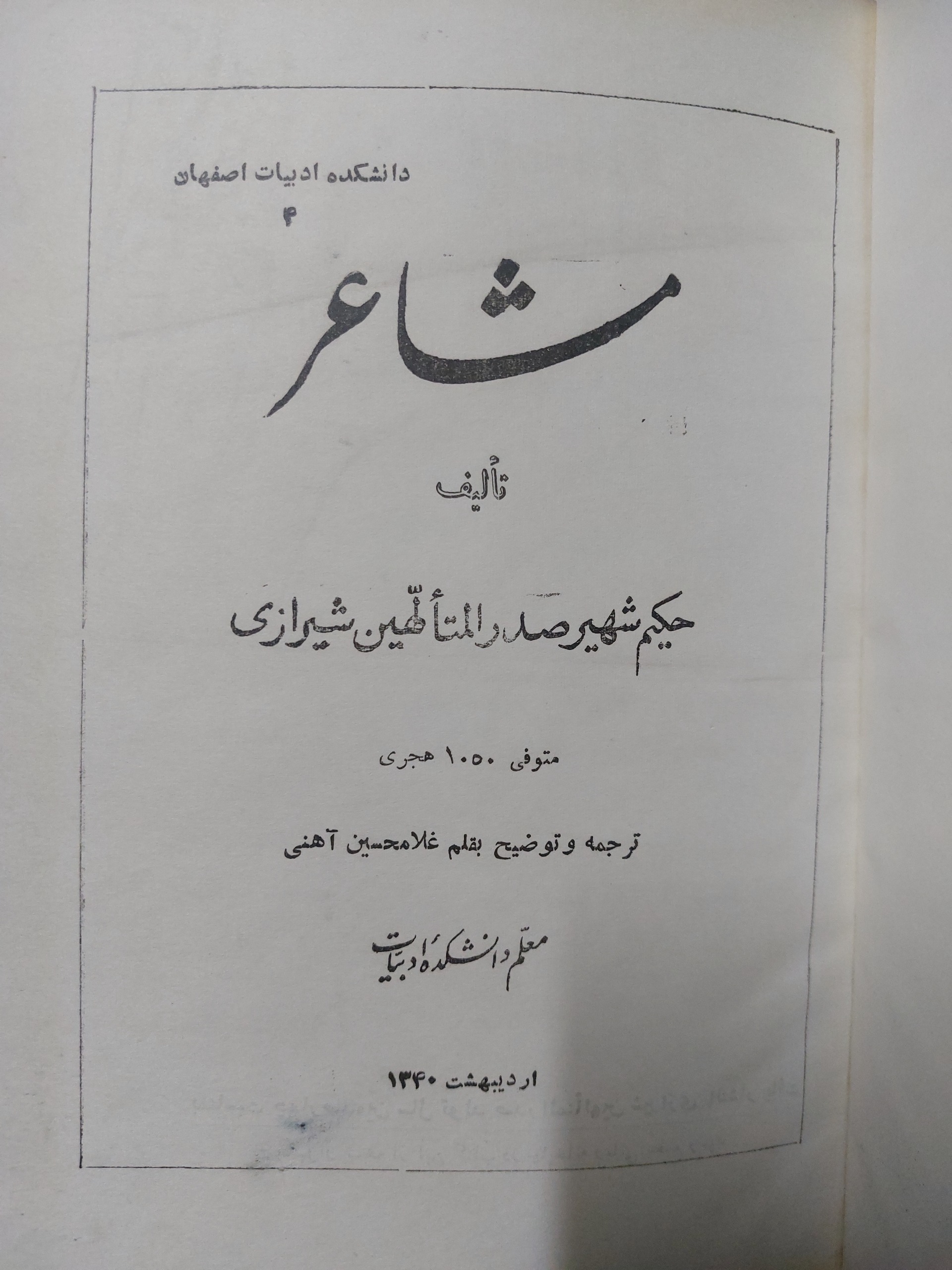 کتاب مشاعر ملاصدرا (ترجمه غلامحسین آهنی)