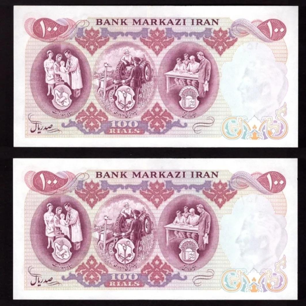 جفت اسکناس زیبا و یادبودی 100 ریال آموزگار- سمیعی